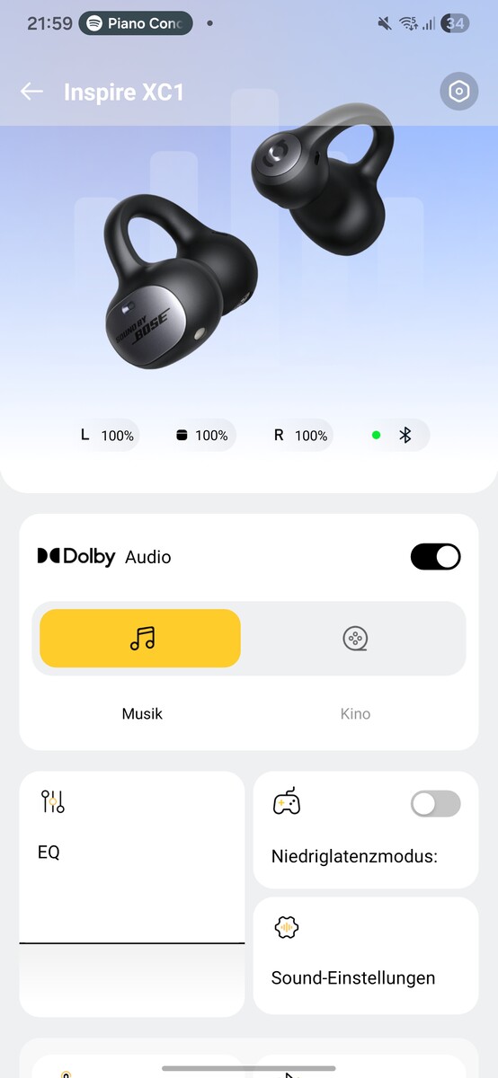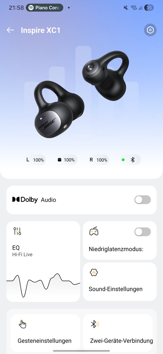 Con Inspire XC1, Baseus offre cuffie aperte con un'ottima qualità del suono. La loro forte sintonia tra diversi stili musicali è particolarmente impressionante. "Bose Sound" è semplicemente un preset di equalizzazione, ma le XC1 offrono anche connettività multipoint, Dolby Audio e LDAC. Purtroppo, queste opzioni audio non possono essere utilizzate contemporaneamente.