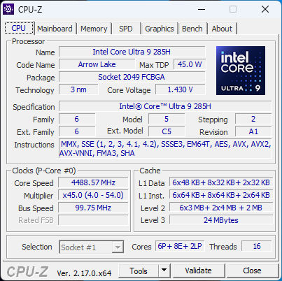 | Media Intel Core Ultra 9 285H | |