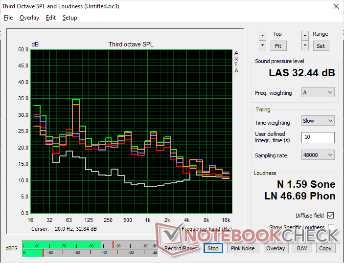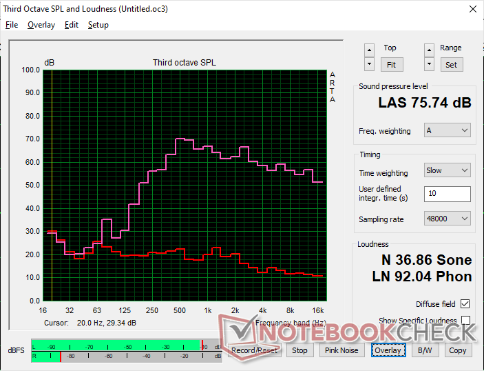 Sfortunatamente, gli altoparlanti raggiungono un livello massimo di circa 75 dB(A), che è buono per le camere da letto, ma altrimenti è un po' troppo silenzioso per i salotti o le sale conferenze, dove il rumore ambientale è comune. Ad esempio, la nostra unità di prova non ha avuto problemi a ricevere i nostri comandi vocali per Alexa, ma i diffusori mancano di potenza durante la riproduzione. Gli altoparlanti del HP OmniBook 5 14ad esempio, raggiungono quasi 93 dB(A) in confronto.