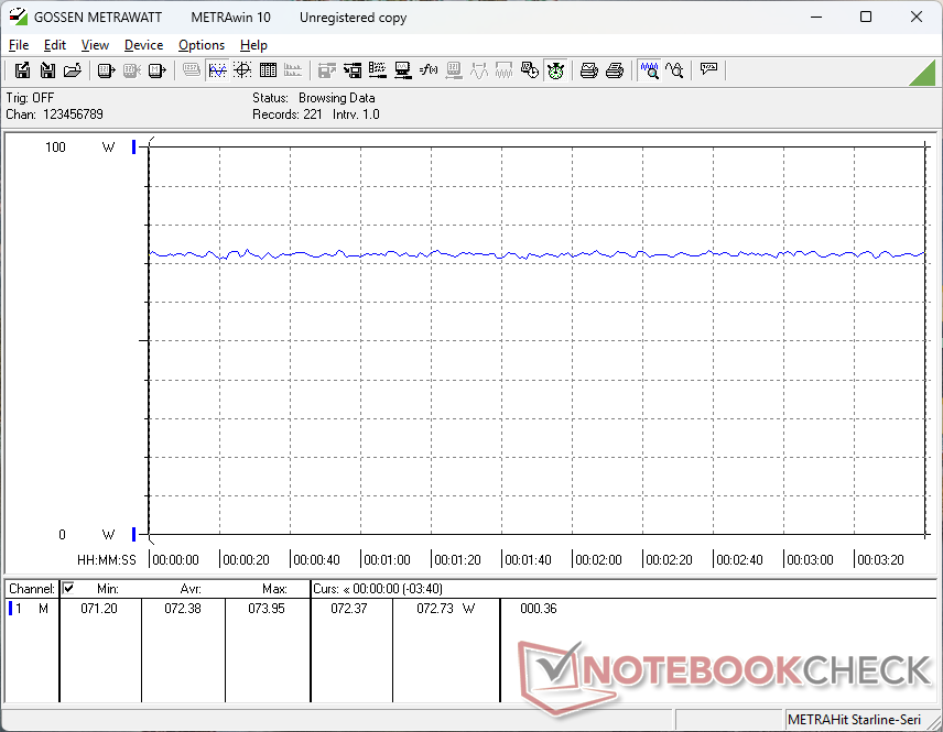 | Cyberpunk 2077 ultra external monitor * (Watt) | 72.4 | 80.1 -11% | 86.3 -19% | 67.4 7% | 83 -15% | 291 -302% |