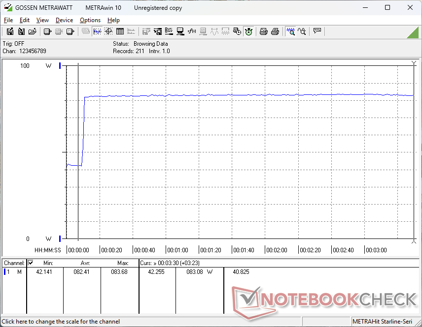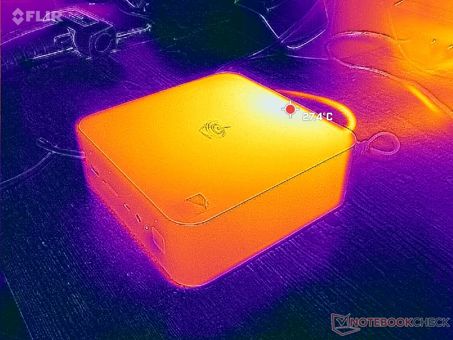 Il consumo è insolitamente elevato quando è al minimo sul desktop, anche dopo aver controllato l'attività in background o i programmi stealth. Il tasso elevato si verifica anche in modalità Sleep, il che suggerisce un potenziale bug dello stato energetico della CPU. Per il resto, è dove ci aspettiamo che sia quando si eseguono carichi più impegnativi. Il sistema è meno esigente di quello alimentato da AMD GMK NucBox K12 pur offrendo prestazioni leggermente più veloci per una migliore performance per watt.
