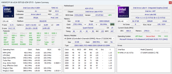 | Media Intel Core Ultra 9 285H (53557 - 67363, n=12) | |