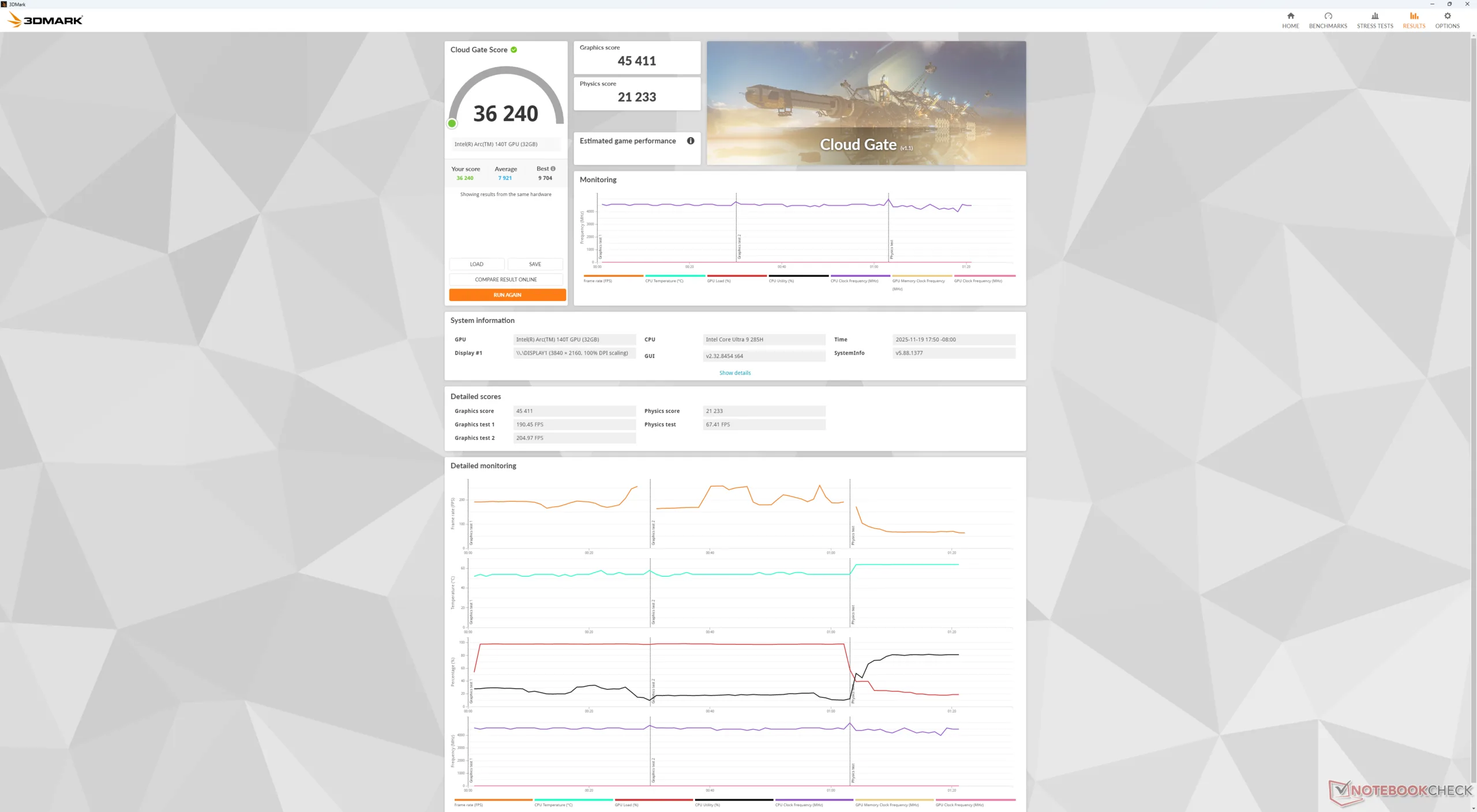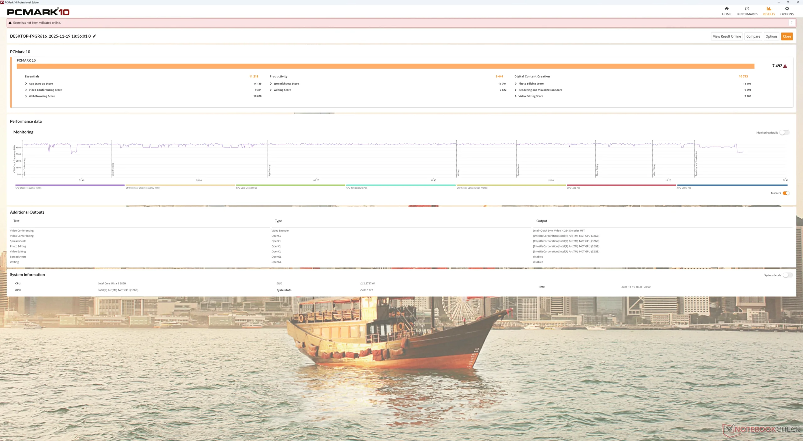 | Media Intel Core Ultra 9 285H (53557 - 67157, n=9) | |