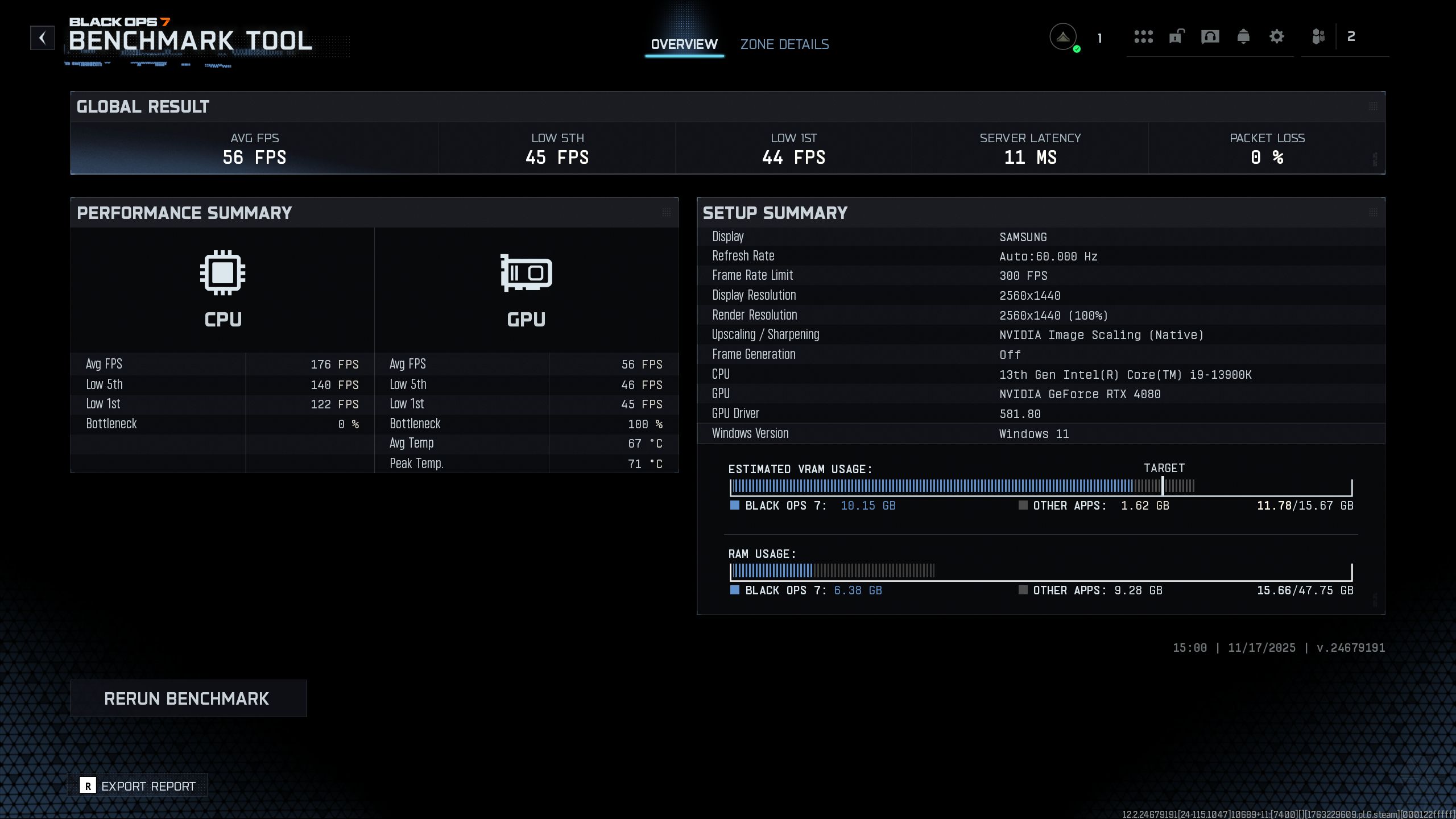 L'esecuzione di Black Ops 7 a 3.840 x 2.160 pixel nel preset Extreme, con ray tracing e senza upscaling mette a dura prova tutte le GPU per laptop attualmente disponibili e persino le schede desktop di fascia alta come la GeForce RTX 4080.