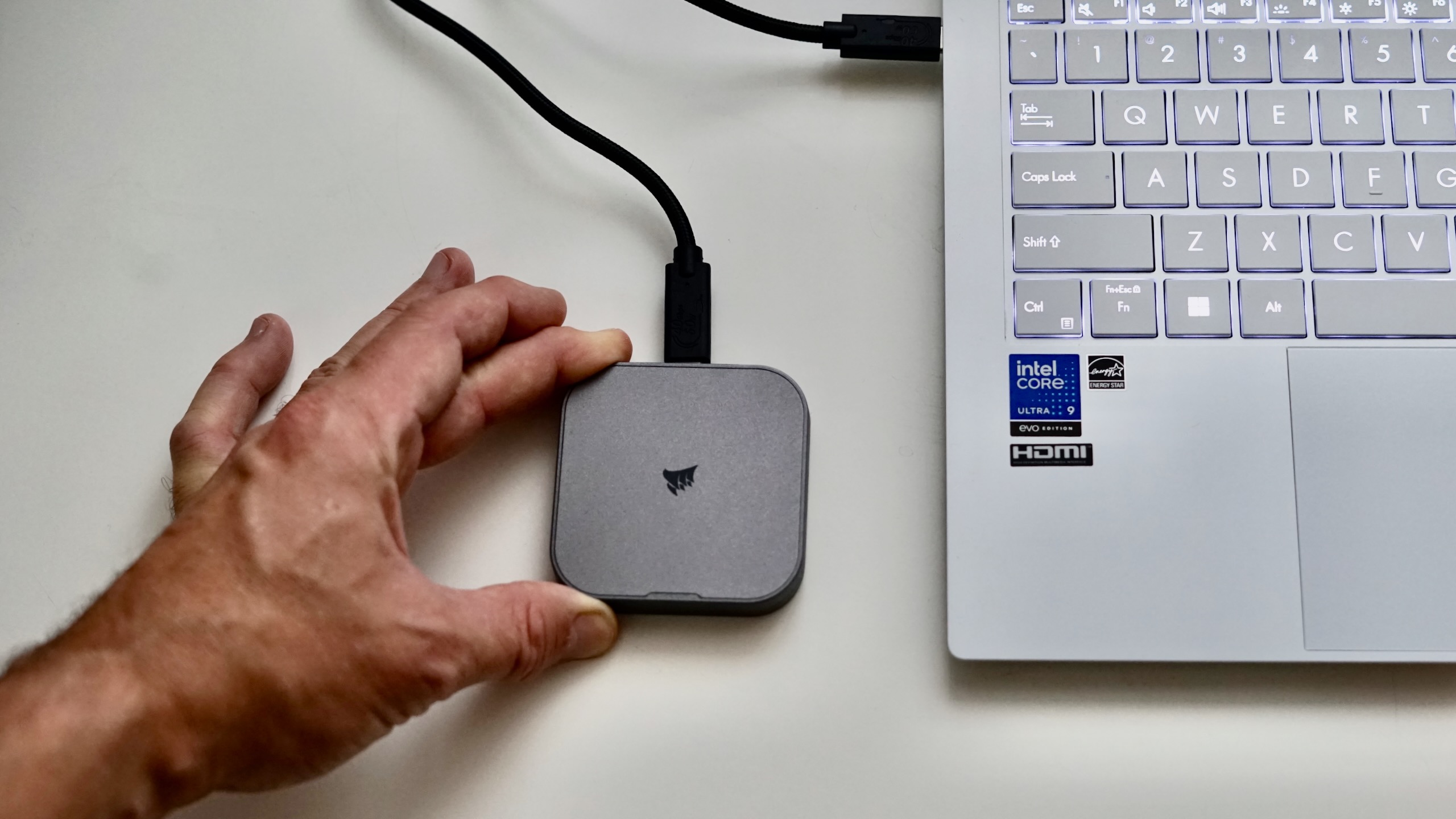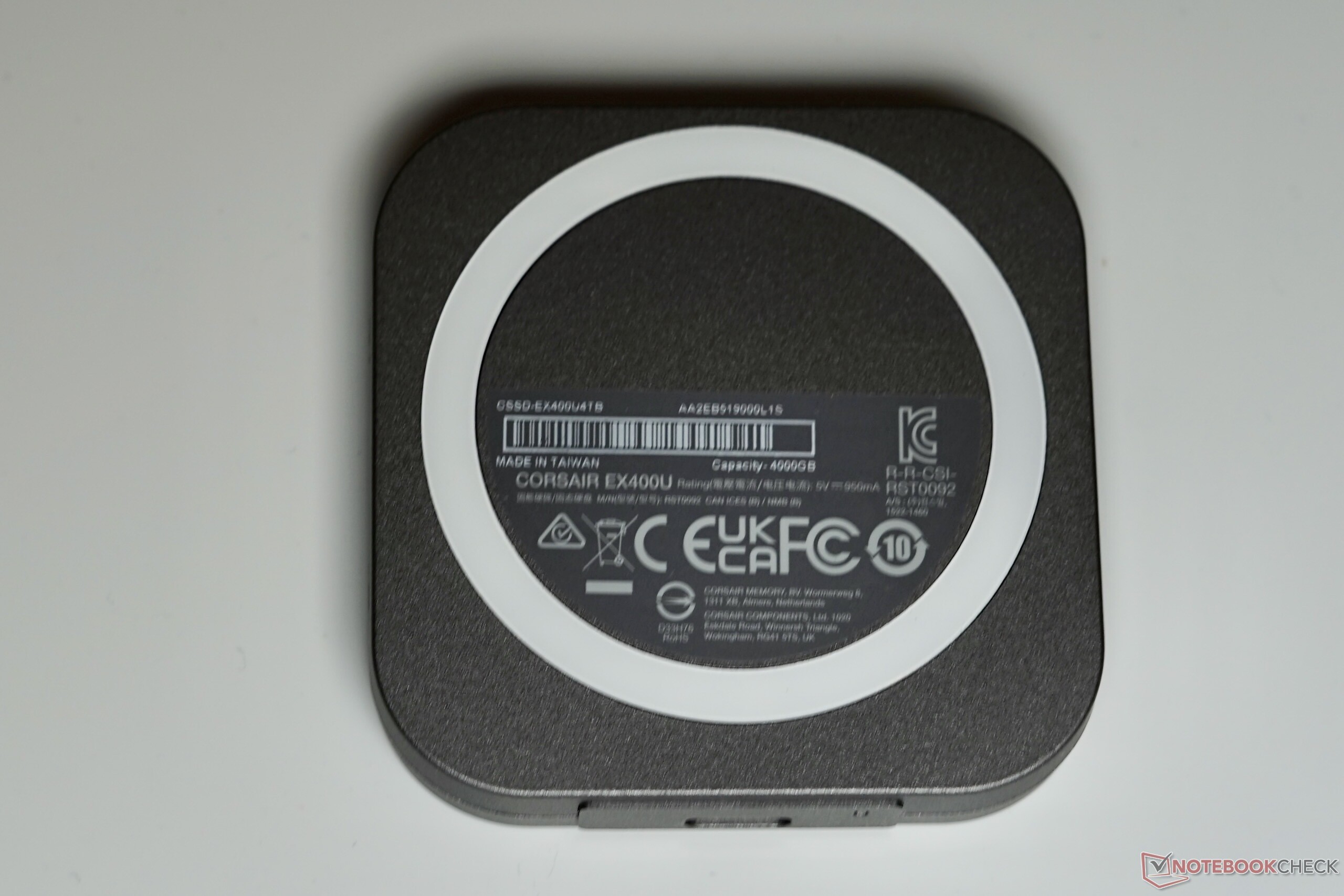 Corsair EX400U è un SSD esterno estremamente veloce con interfaccia USB4. Nei nostri benchmark ha persino superato i 4.000 MB/s pubblicizzati (lettura sequenziale diskspd). Anche la compatibilità è molto buona e l'unità ha funzionato perfettamente con i dispositivi che eseguono macOS 26 (M4 Pro MBP14), iPad OS 26 (M4 iPad), ChromeOS (Lenovo Chromebook), iOS (iPhone 16 Pro per ProRes direttamente sull'unità SSD) e Windows 11. Il telaio è piacevolmente piccolo e con l'anello MagSafe integrato sul lato inferiore, l'SSD può essere praticamente montato anche su un iPhone o persino su una custodia da tavolo in metallo. Utilizzando l'iPhone può anche usare l'SSD come scaldamani, dato che lo sviluppo di calore è il chiaro svantaggio. Il raffreddamento tramite l'alloggiamento in alluminio funziona bene per i componenti interni, ma abbiamo misurato fino a 69 °C sotto carico sulla parte superiore - roba che scotta!