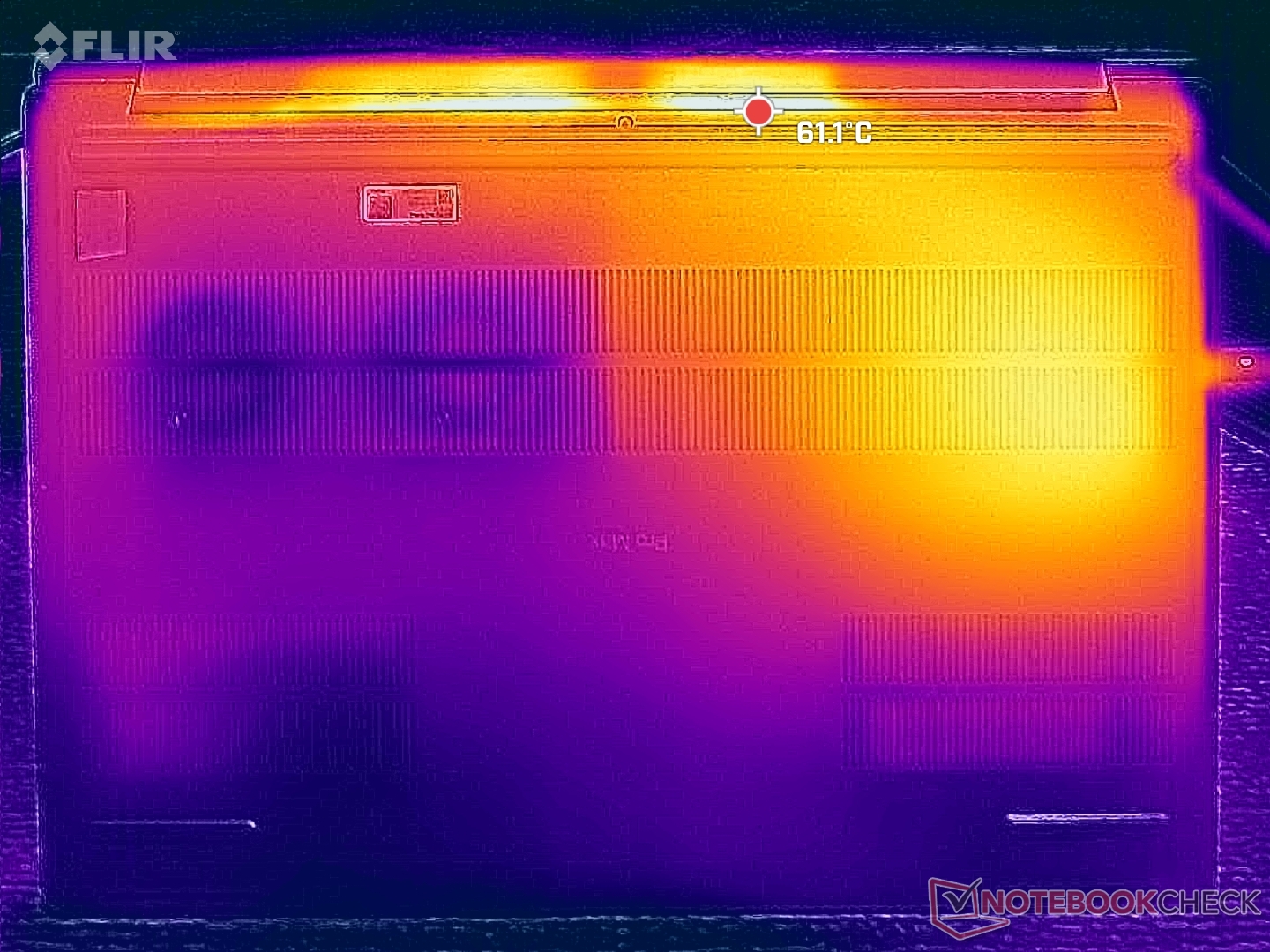 (-) Il lato inferiore si riscalda fino ad un massimo di 47 °C / 117 F, rispetto alla media di 41.2 °C / 106 F