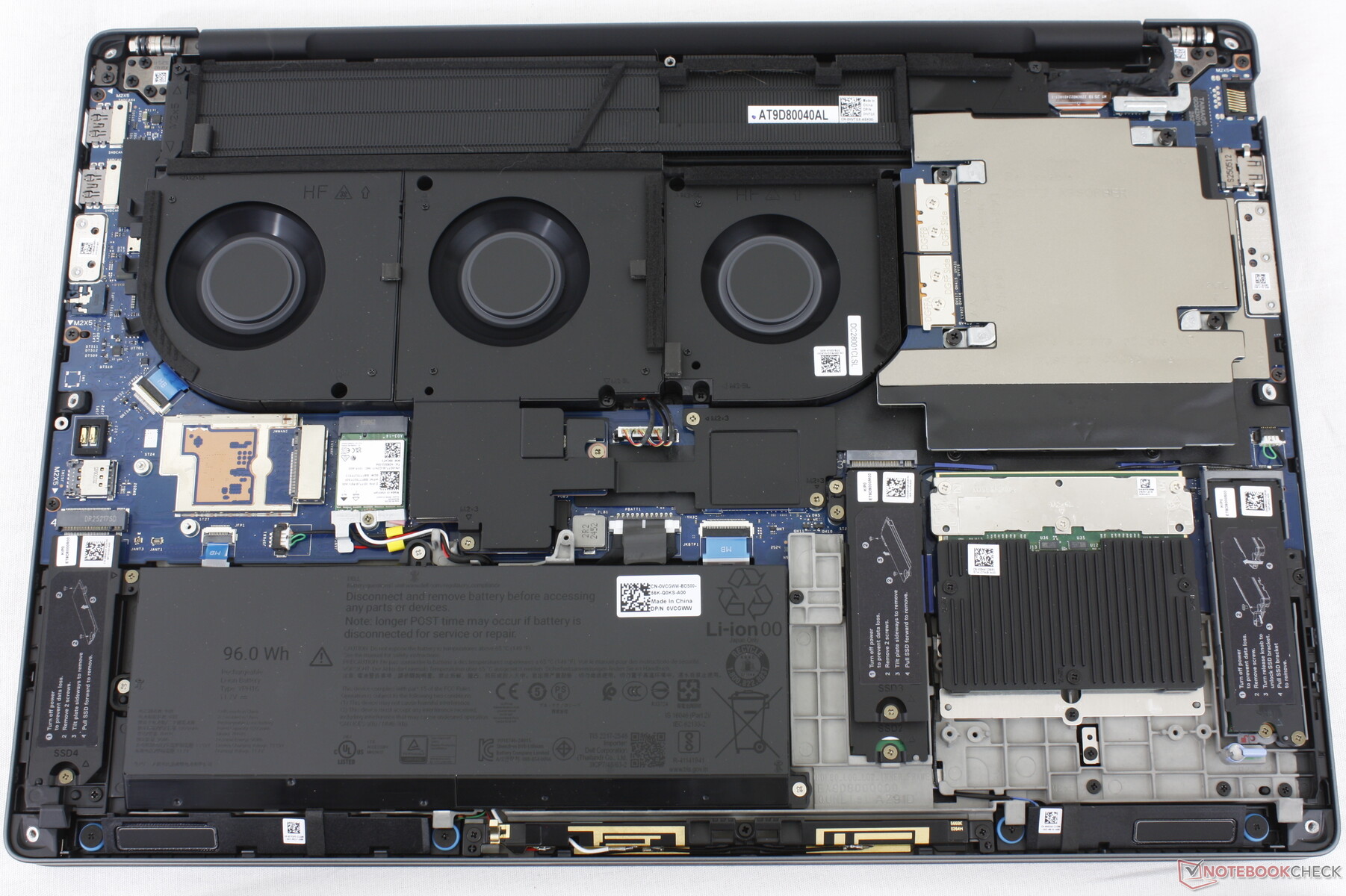 Il telaio è essenzialmente una versione ingrandita del Dell Pro Max 16 Plus da 16 pollici, con un aumento di peso di quasi il 30%. La maggior parte delle caratteristiche fisiche, come la tastiera, il clickpad e persino le porte, rimangono identiche, con solo piccole differenze nella scheda madre.