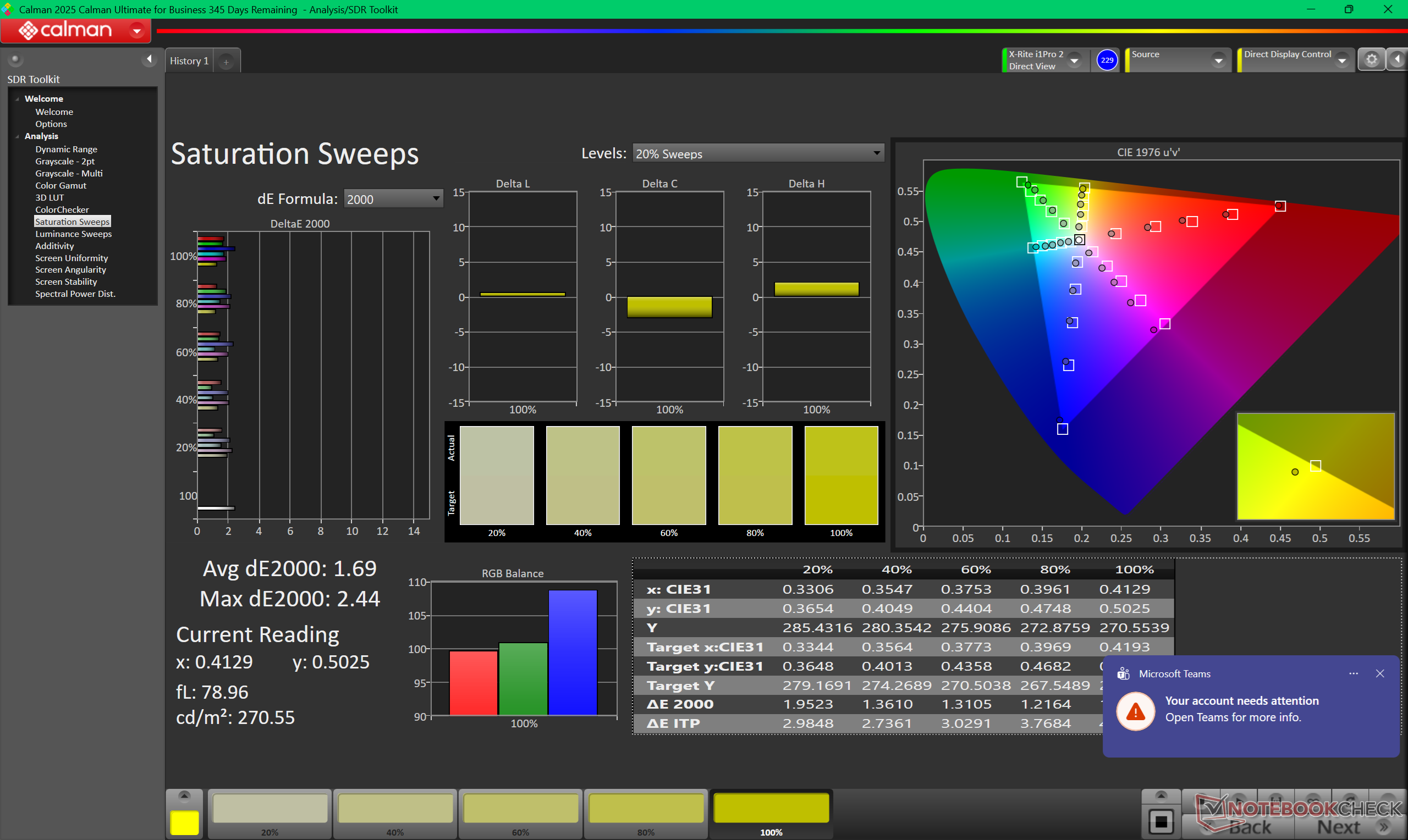 Anche se il display viene fornito con una calibrazione decente, c'è ancora spazio per leggeri miglioramenti. Calibrando il pannello da soli con un colorimetro X-Rite, i valori medi della scala di grigi e deltaE del colore migliorerebbero da 2,5 e 2,09 a soli 1,7 e 1,09, rispettivamente, e la temperatura del colore si avvicinerebbe all'obiettivo di 6500K.