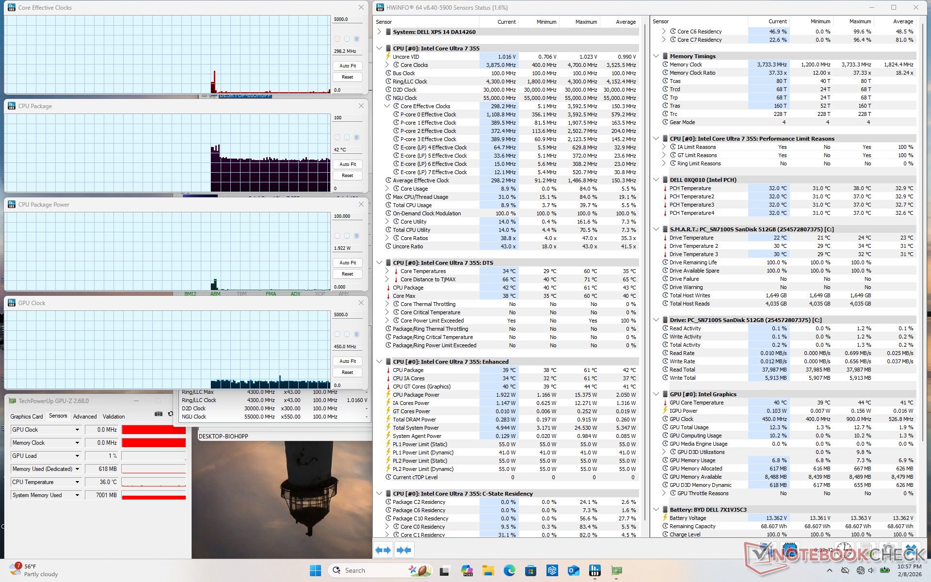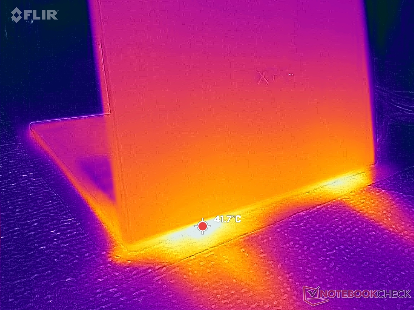 I punti caldi della temperatura di superficie si stabilizzerebbero a livelli quasi identici a quelli che abbiamo osservato sulla XPS 14 X7 nonostante le prestazioni significativamente più veloci disponibili su quest'ultima configurazione.