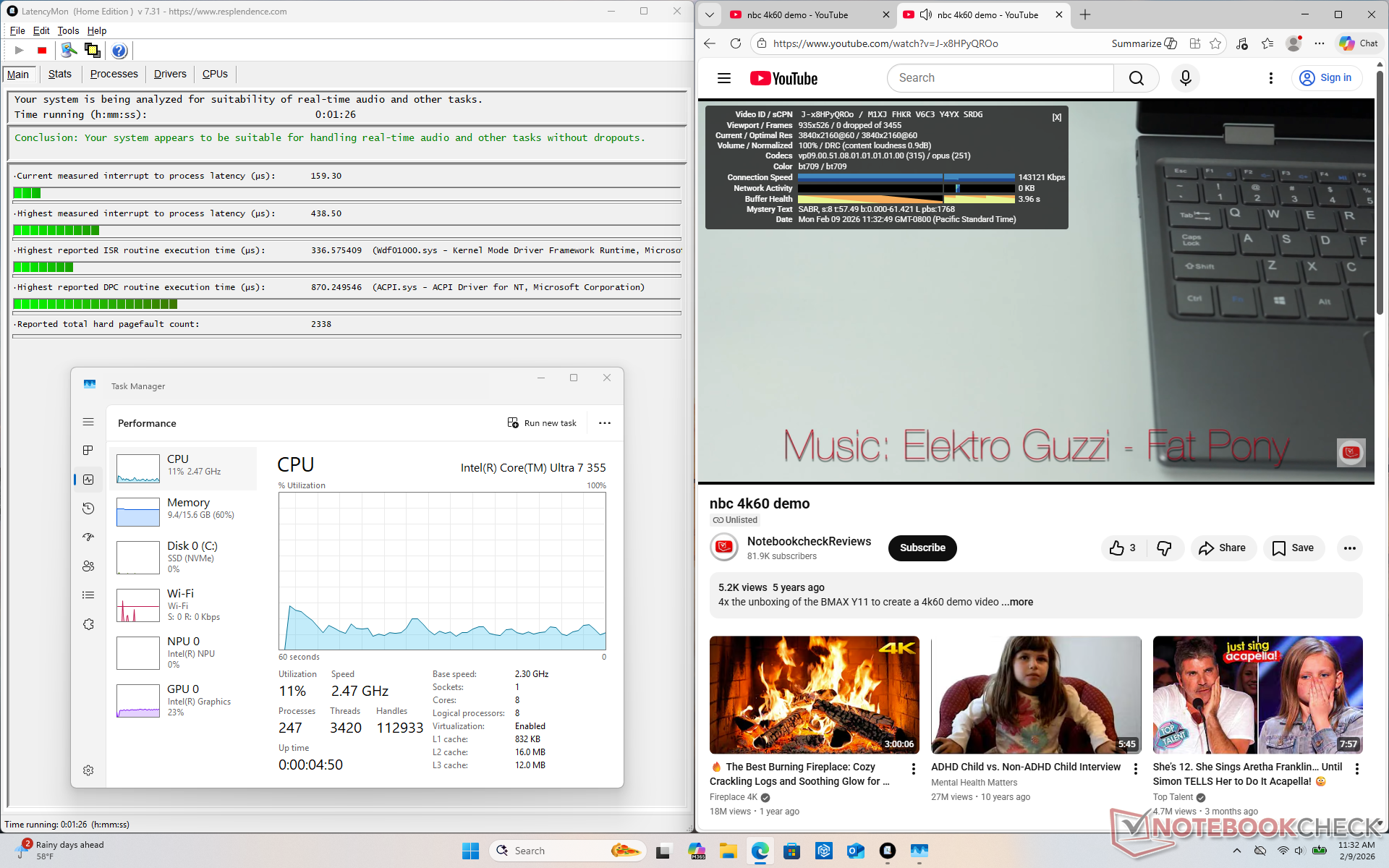 Il Core Ultra 7 355 perde molto di ciò che rende la serie H di Panther Lake così speciale in primo luogo. In particolare, sia le prestazioni che le prestazioni per watt sono più vicine a Lunar Lake-V o addirittura peggiori se si considerano le prestazioni grafiche integrate. Mentre l'ammiraglia Core Ultra X7 358H rappresenta un enorme balzo in avanti per la serie, il Core Ultra 7 355 di fascia media può sembrare un rebranded di Core Ultra 7 255U sotto molti aspetti. Il sistema non funziona in modo sensibilmente più fresco o più a lungo rispetto all'opzione più veloce Core Ultra X7, nonostante le differenze di prestazioni.