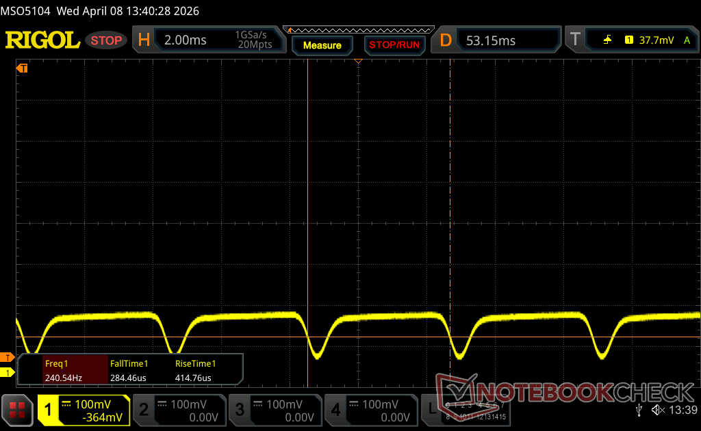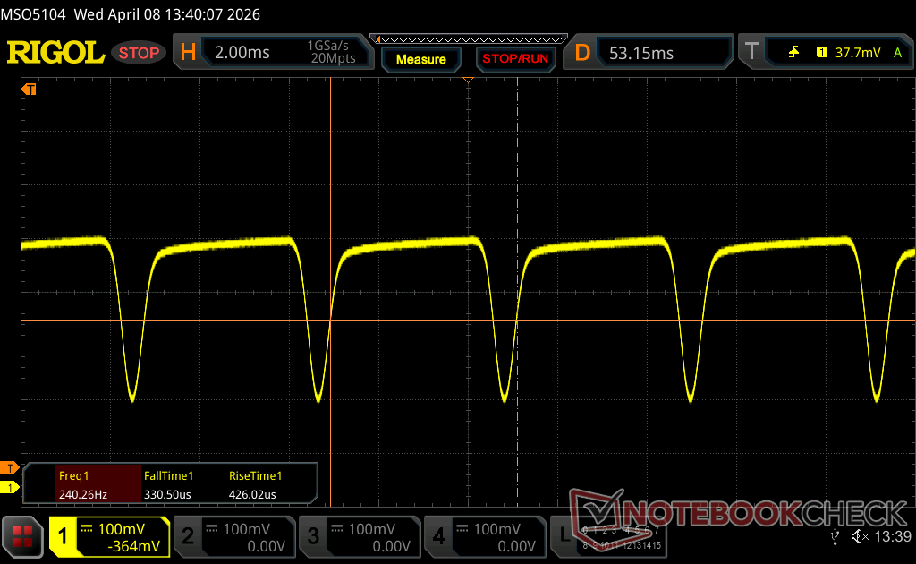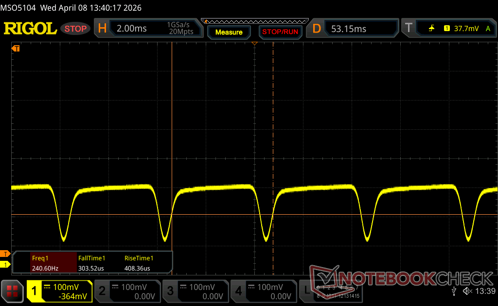 | flickering dello schermo / PWM rilevato | 240.2 Hz Amplitude: 31 % | ≤ 100 % settaggio luminosita' | |