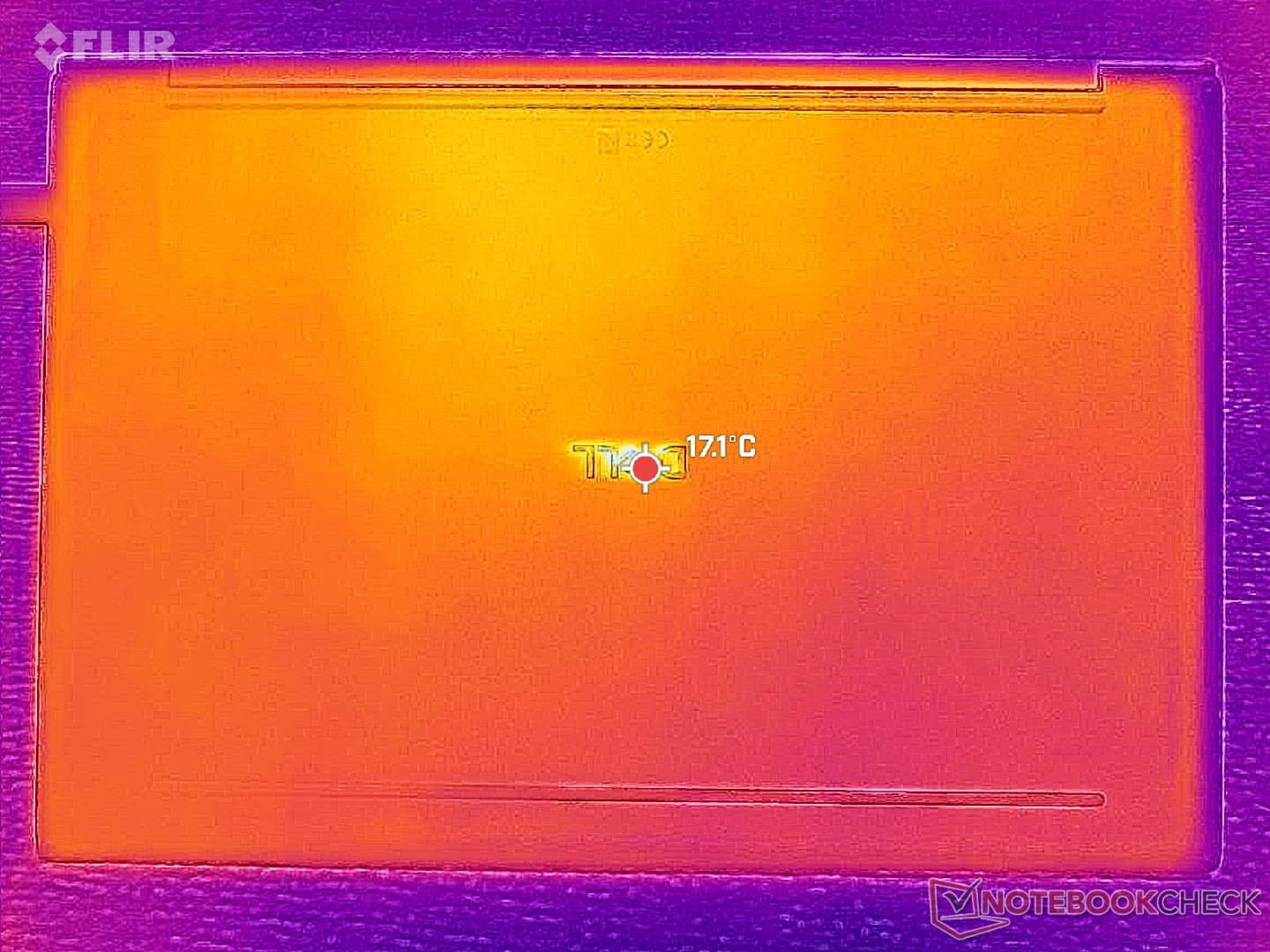 (+) In idle, la temperatura media del lato superiore è di 22.3 °C / 72 F, rispetto alla media deld ispositivo di 31.3 °C / 88 F.