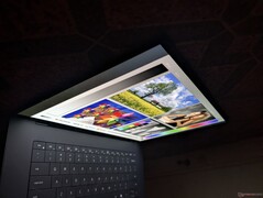 La luminosità massima del pannello OLED raggiunge i 400 nits in modalità SDR o i 500 nits in modalità HDR, secondo le nostre misurazioni interne. Pertanto, la configurazione IPS più economica è in realtà leggermente più luminosa della configurazione OLED quando si visualizzano contenuti SDR. La visibilità all'aperto non è quindi necessariamente migliore con l'opzione OLED lucido.