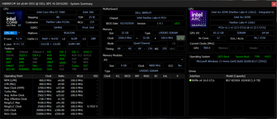 | Dell XPS 16 Core Ultra 5 325 Intel Core Ultra 5 325 ⎘ Intel Graphics 4 Xe3 Panther Lake iGPU ⎘ 16 GB Memoria, 512 GB SSD | Prezzo di listino: 1600 USD | 1.7 kg | 15.4 mm | 16.00" 1920x1200 142 PPI IPS | |
