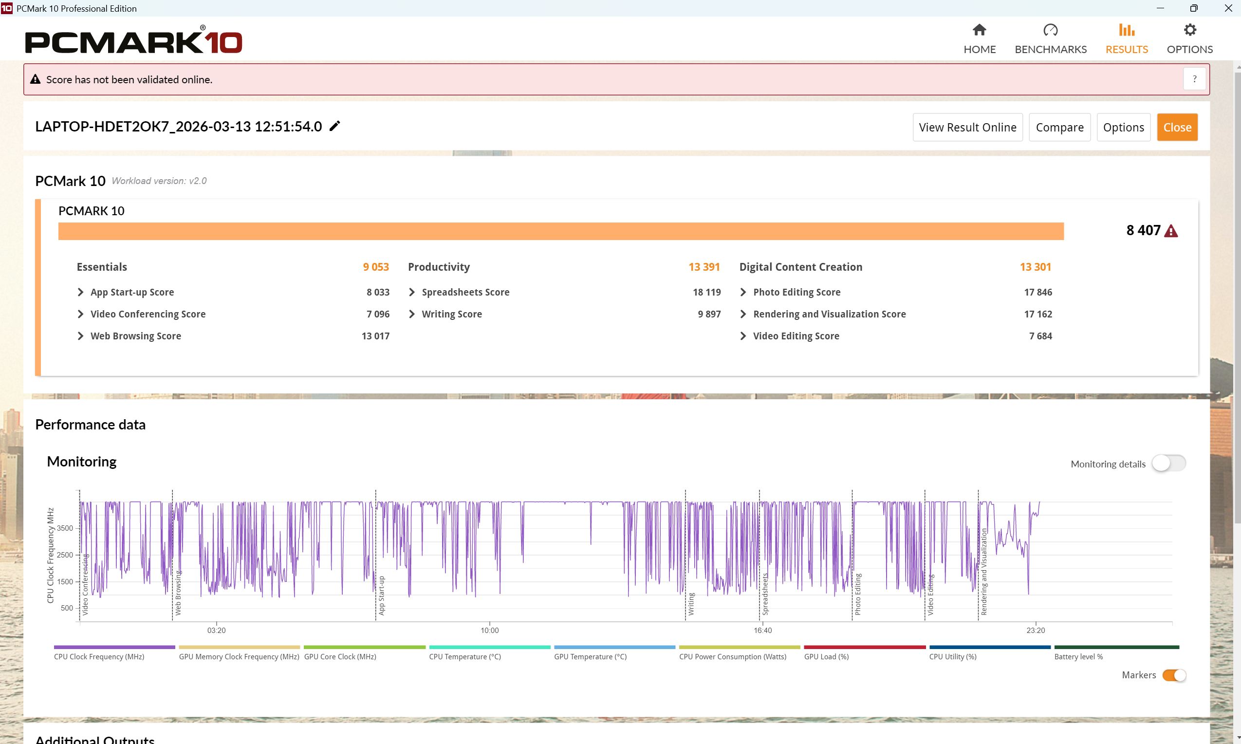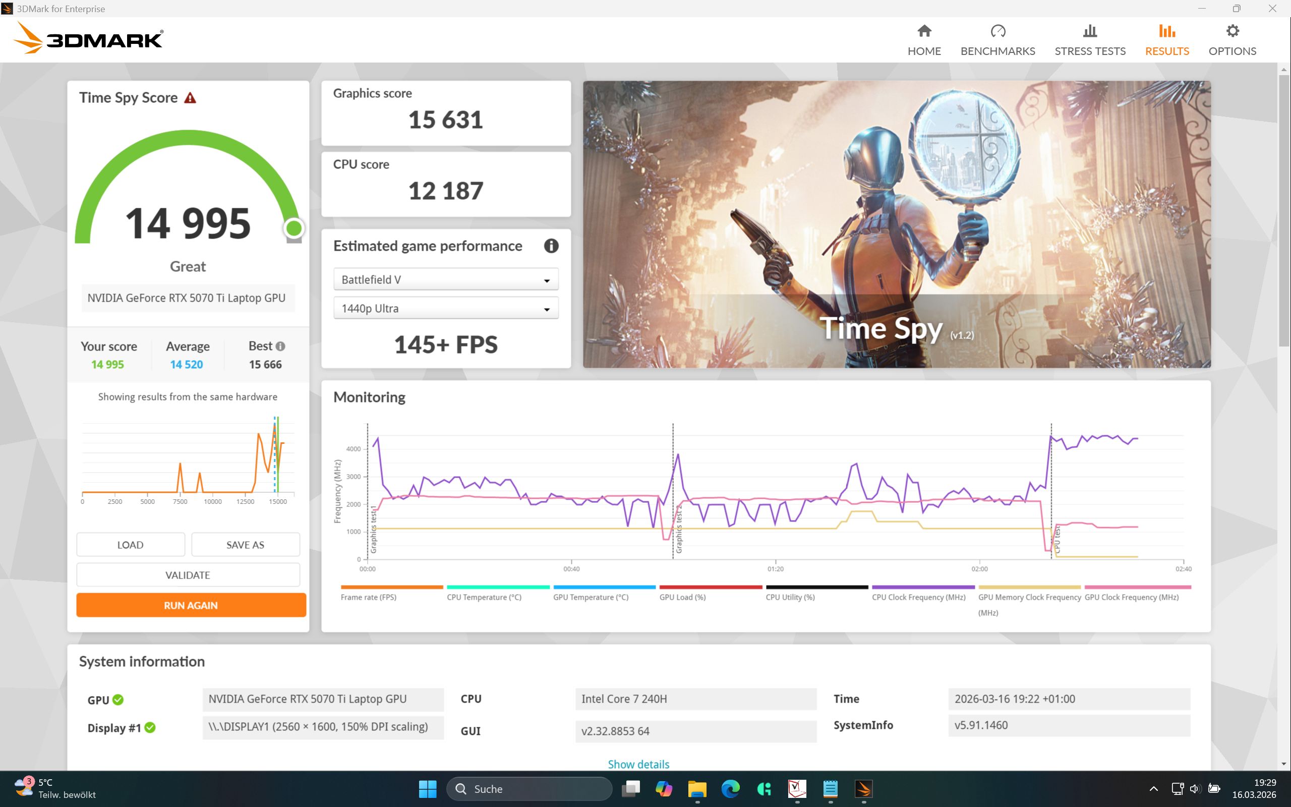 Sotto carico, l'A16 Pro è tra i portatili RTX 5070 Ti più efficienti. Tuttavia, il consumo di energia in idle rimane troppo elevato, anche in periodi di misurazione prolungati (dGPU inattiva, nessun processo in background).