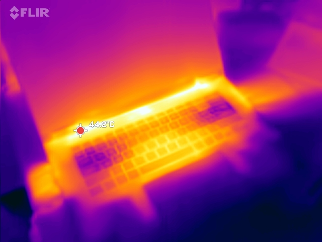 (+) In idle, la temperatura media del lato superiore è di 30.1 °C / 86 F, rispetto alla media deld ispositivo di 33.9 °C / 93 F.
