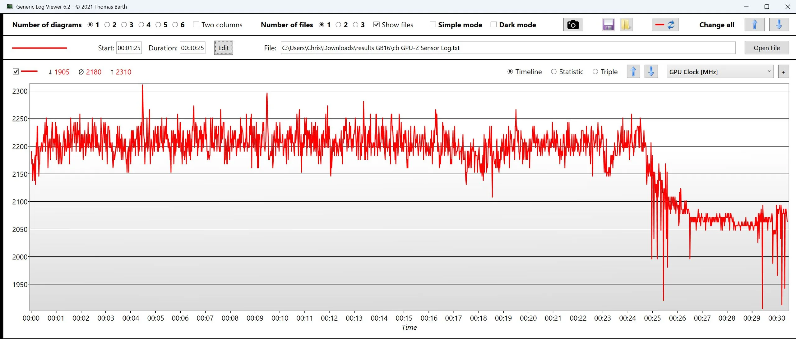 | Clock della CPU (GHz) | Clock della GPU (MHz) | Temperatura media della CPU (°C) | Temperatura media della GPU (°C) | ||