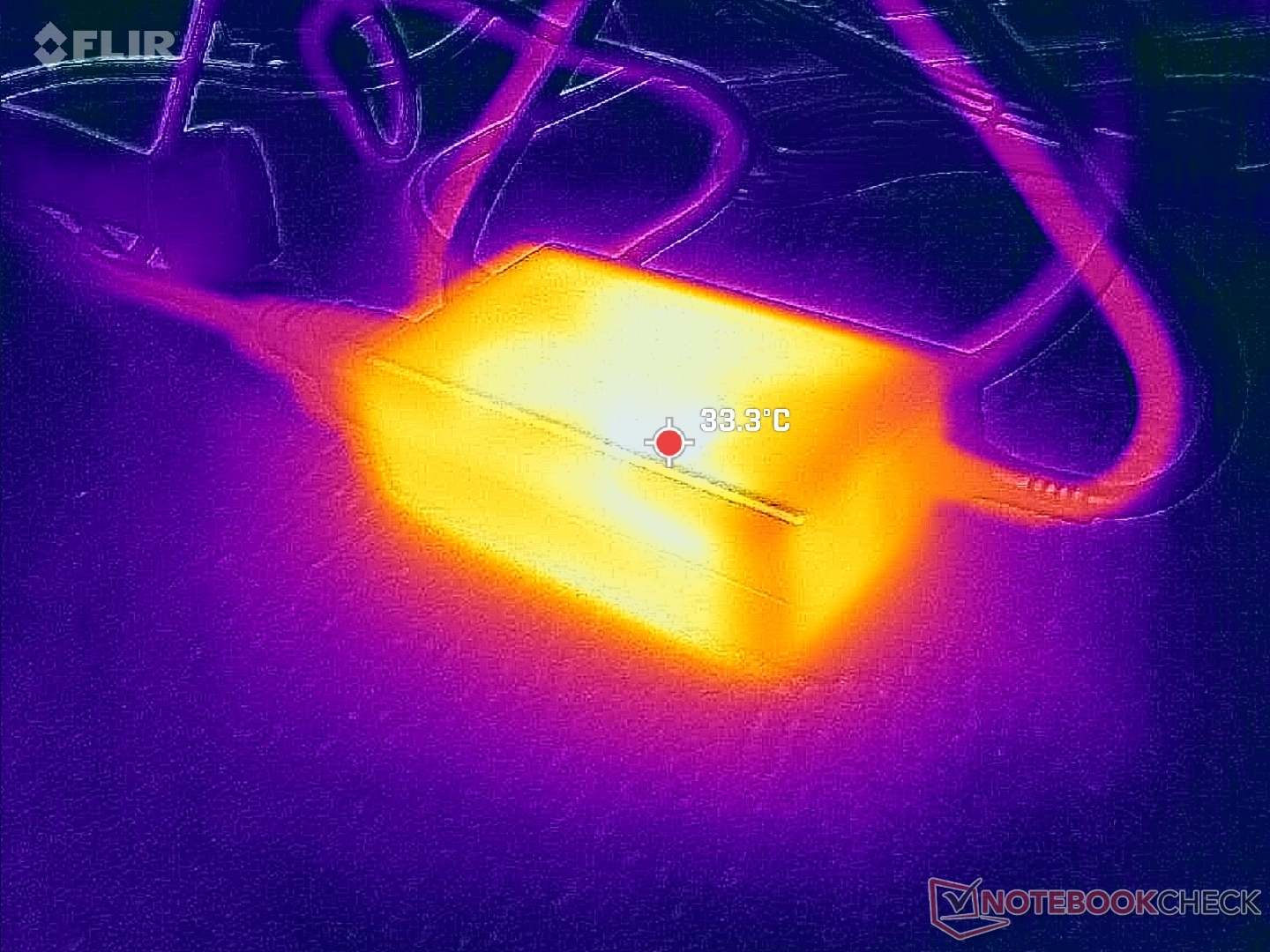 (±) Il lato inferiore si riscalda fino ad un massimo di 42.4 °C / 108 F, rispetto alla media di 36.8 °C / 98 F