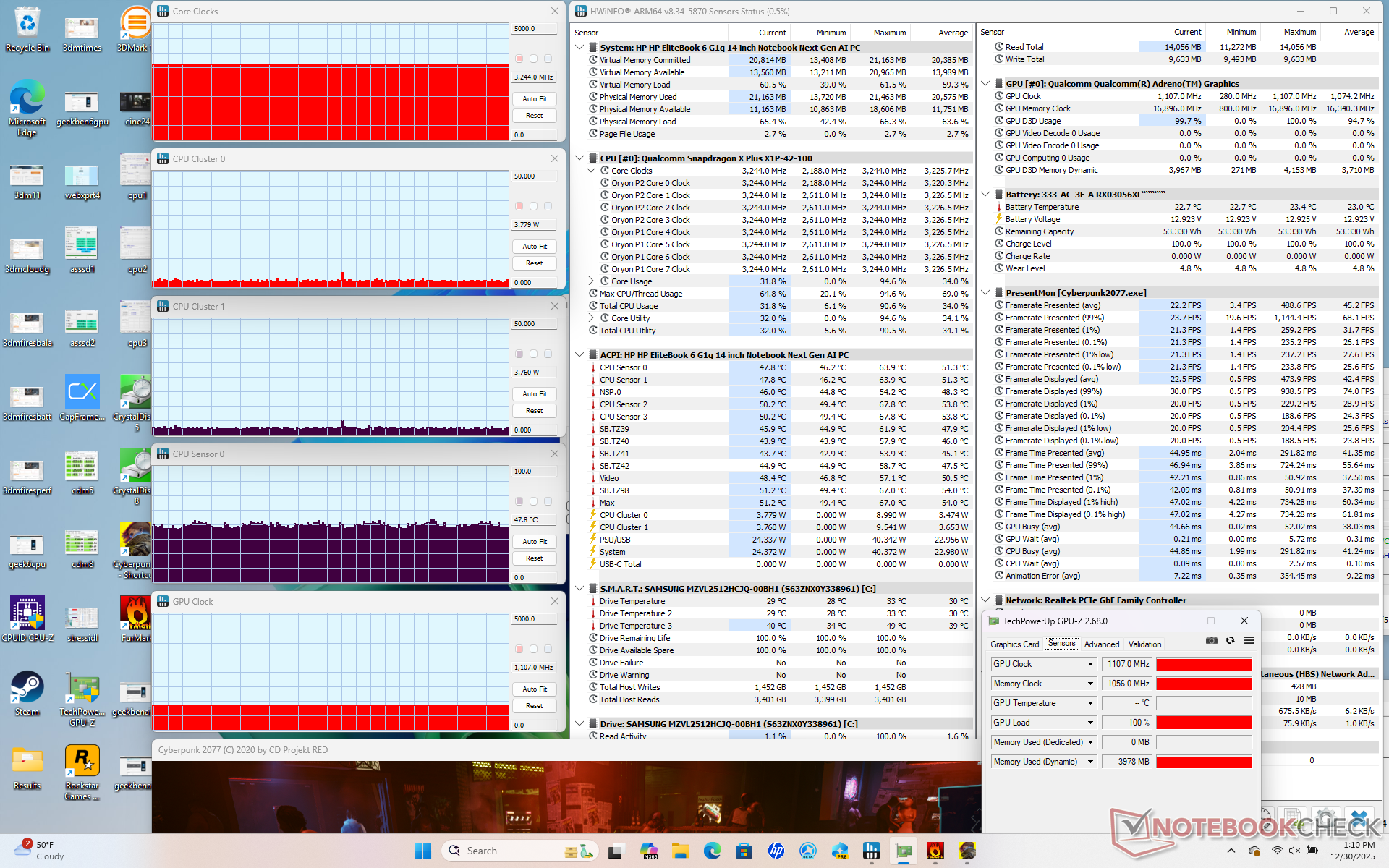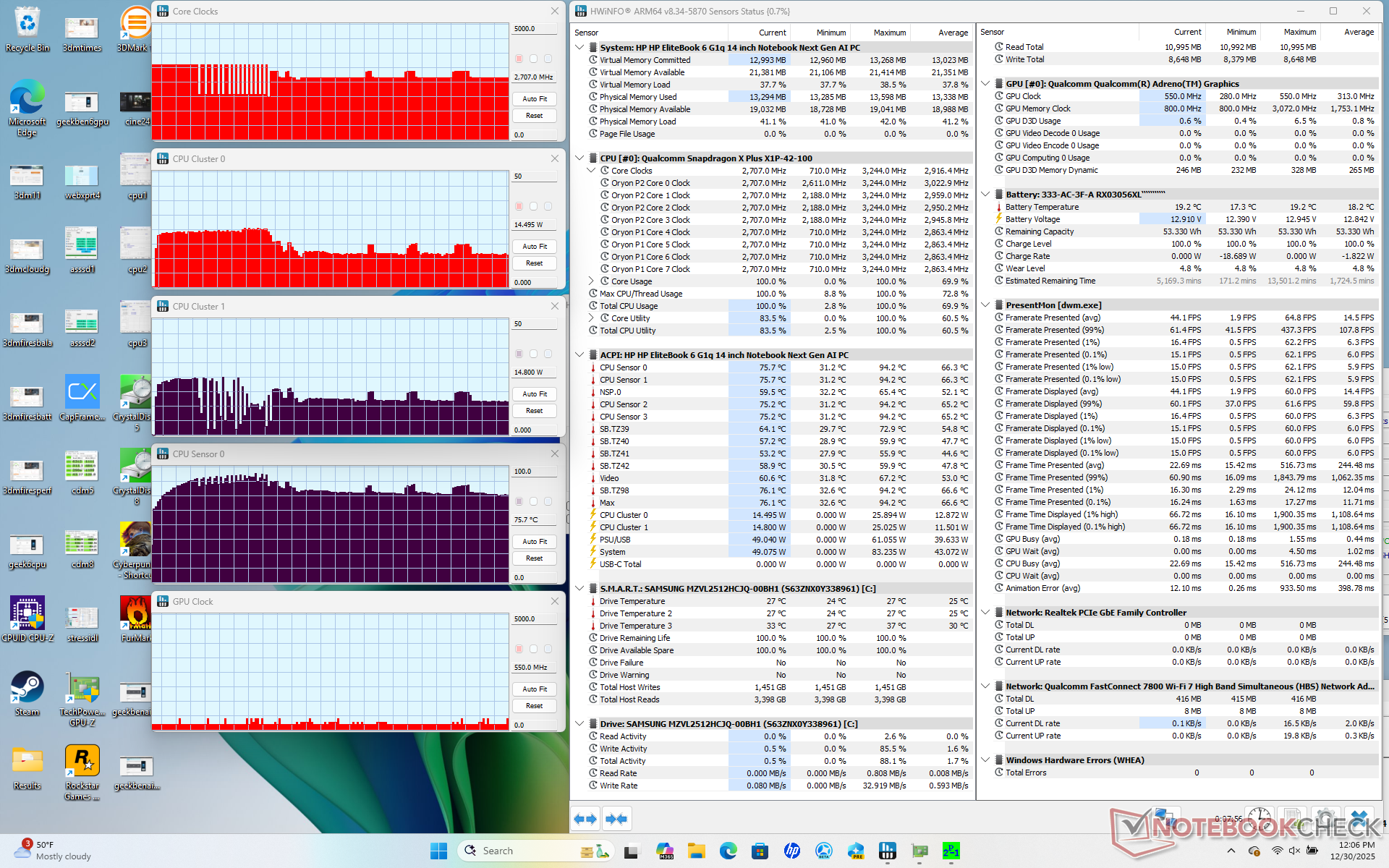 | Clock medio della CPU (GHz) | Clock della GPU (MHz) | Temperatura media della CPU (°C) | |