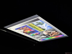 Questa opzione offre colori sRGB completi, ma con tempi di risposta bianco-nero relativamente lenti, nessuna calibrazione del colore in fabbrica e solo una frequenza di aggiornamento di 60 Hz. Le opzioni touchscreen sono limitate solo al pannello di fascia bassa da 300 nit, mentre il pannello super-luminoso è legato solo a Sure View. Per la navigazione di base, lo streaming e l'editing amatoriale di immagini, tuttavia, il nostro pannello da 400 nit con colori sRGB è sufficiente.