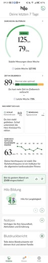 La gamma completa di funzioni è disponibile per gli utenti di Hilo Band solo se sottoscrivono un abbonamento (EUR5,99 / CAD $6,99 / AUS $9,99 / £4,99 al mese), che estende la gamma standard per includere un confronto dettagliato dell'asse temporale, tempi nell'intervallo target, note e tracciamento dei farmaci. La misurazione in sé funziona bene, il rapporto della pressione sanguigna può essere esportato in formato PDF e le misurazioni degli ultimi 7 giorni possono essere visualizzate in dettaglio. I dati possono essere sincronizzati mensilmente con Apple Health e Health Connect, se lo si desidera, o quotidianamente con un abbonamento.