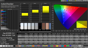 Osservando più da vicino il display con uno spettrofotometro e il software CalMAN, troviamo le sue proprietà di rappresentazione del colore relativamente accurate, sebbene mostri una leggera tendenza al blu e una temperatura di colore leggermente elevata in ogni modalità provata. La rappresentazione del contenuto dello schermo può essere regolato nelle impostazioni del display del tablet. Le modalità colore sono 'normale' e 'vivido', mentre la temperatura colore può essere impostata liberamente oppure è possibile selezionare uno dei preset 'standard', 'caldo' o 'freddo'.