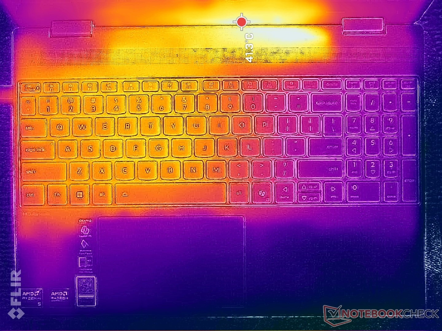 (+) I poggiapolsi e il touchpad sono piu' freddi della temperatura della pelle con un massimo di 26.8 °C / 80.2 F e sono quindi freddi al tatto.