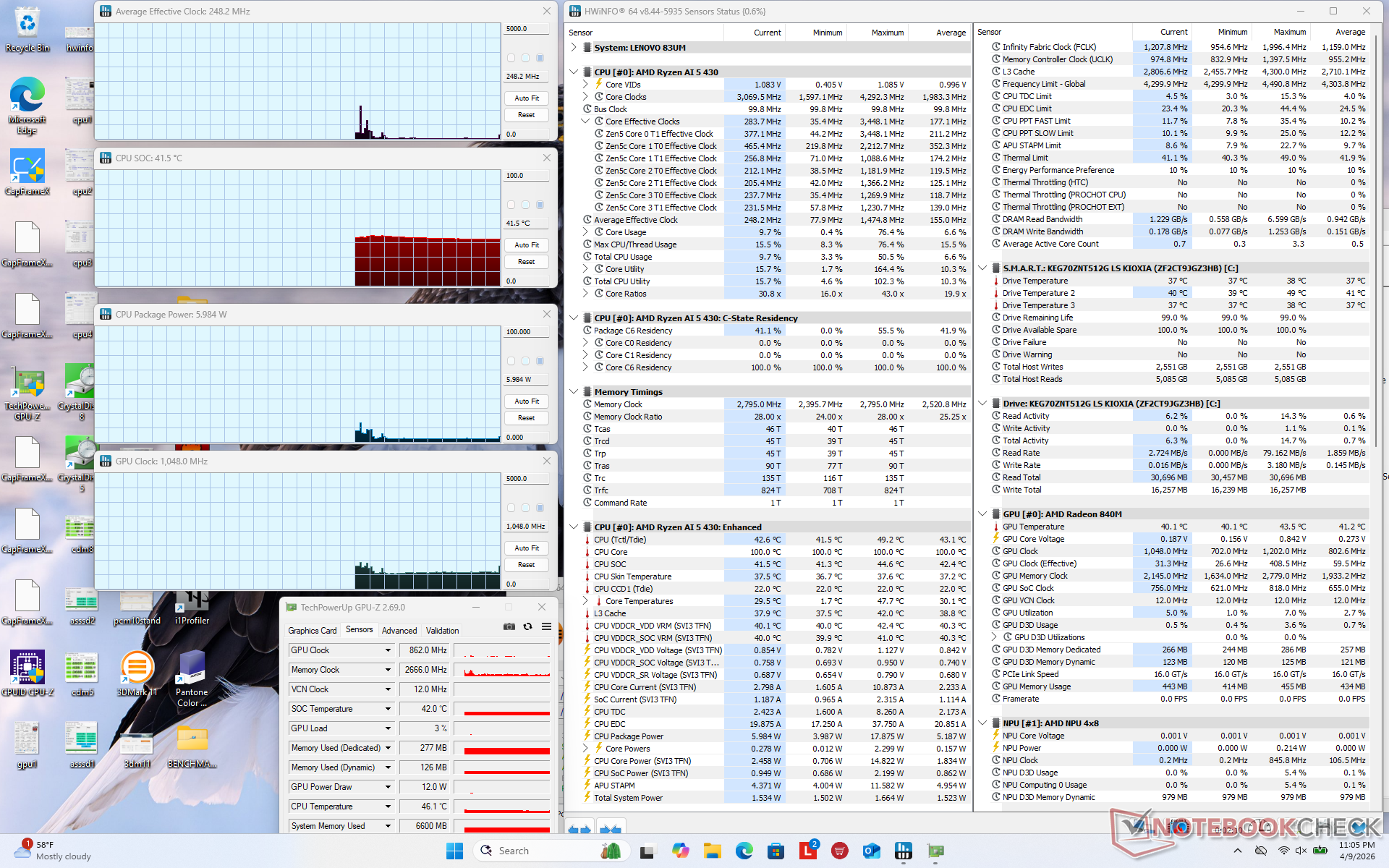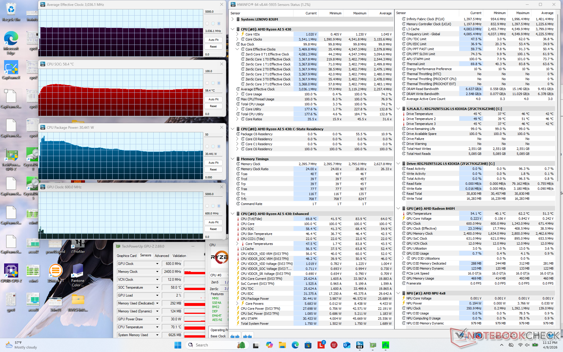 | Clock medio della CPU (GHz) | Clock della GPU (MHz) | Temperatura media della CPU (°C) | |