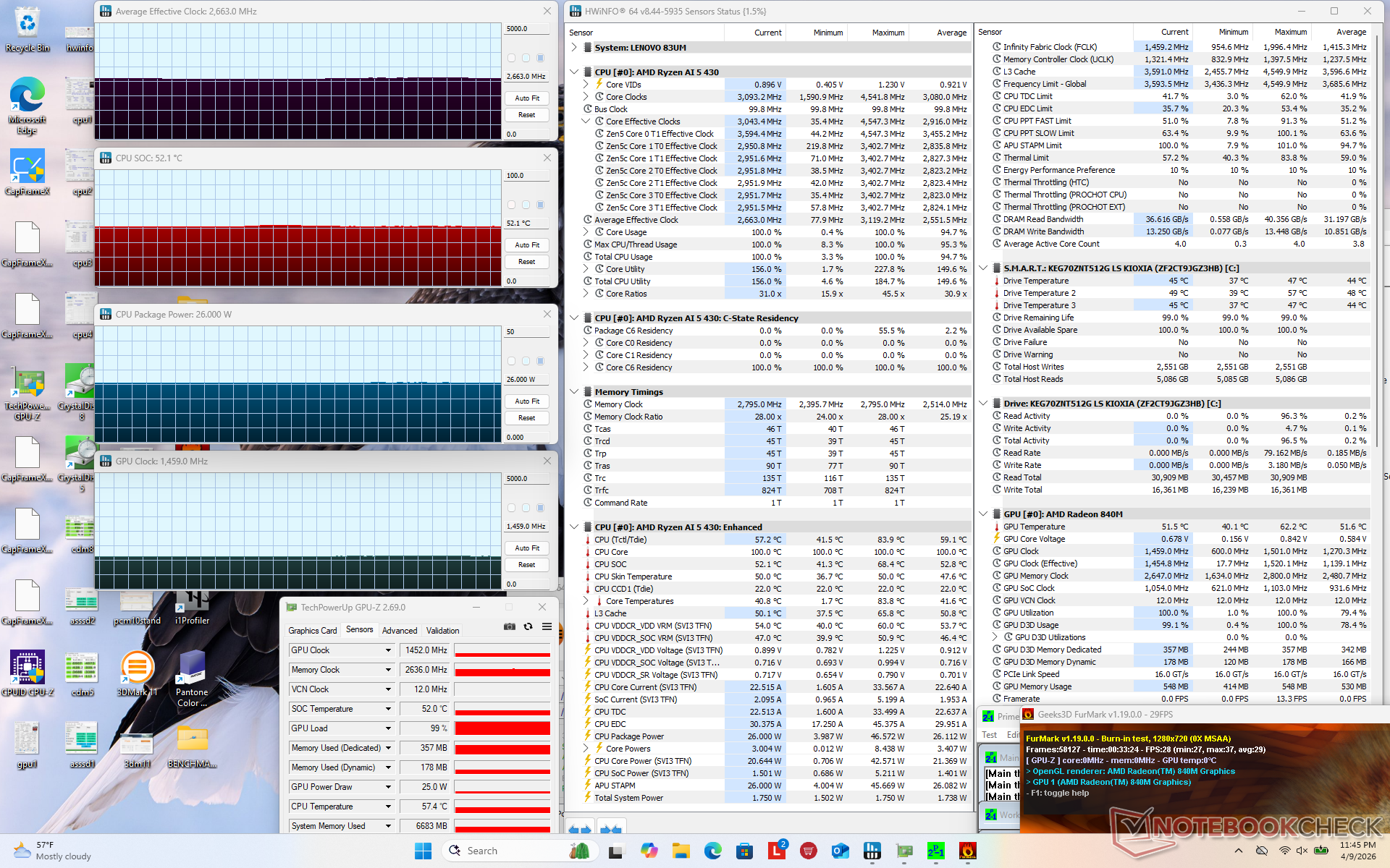 | Prime95 + FurMark Stress | 2,7 | 1459 | 52 |