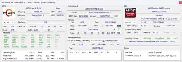 | Lenovo IdeaPad 5 2-in-1 15AGP11 AMD Ryzen AI 5 430 ⎘ AMD Radeon 840M ⎘ 16 GB Memoria | Prezzo di listino: 800 USD | 1.8 kg | 17.6 mm | 15.30" 1920x1200 148 PPI IPS | |