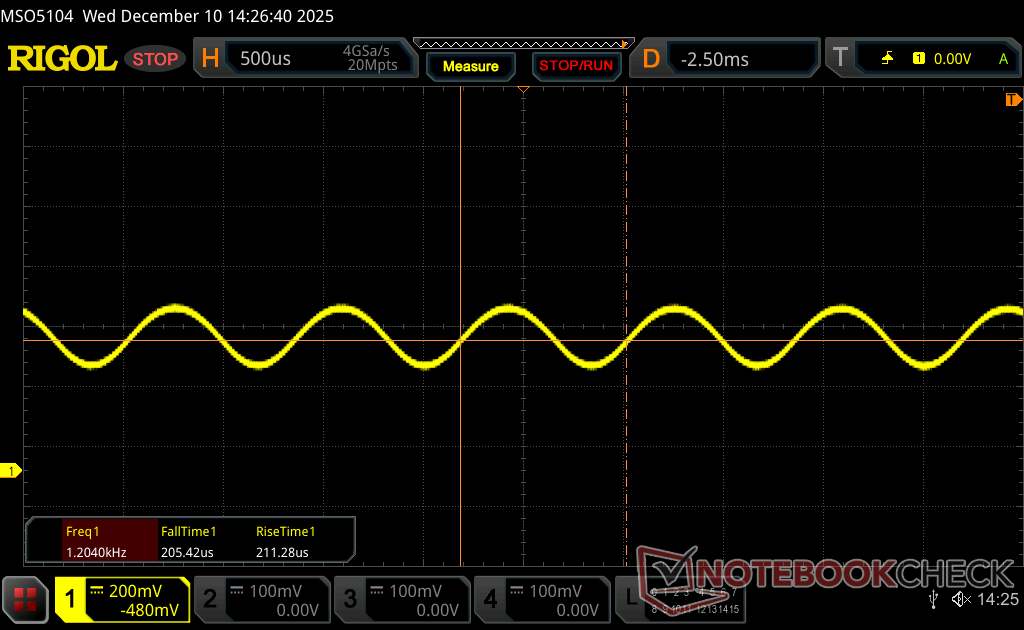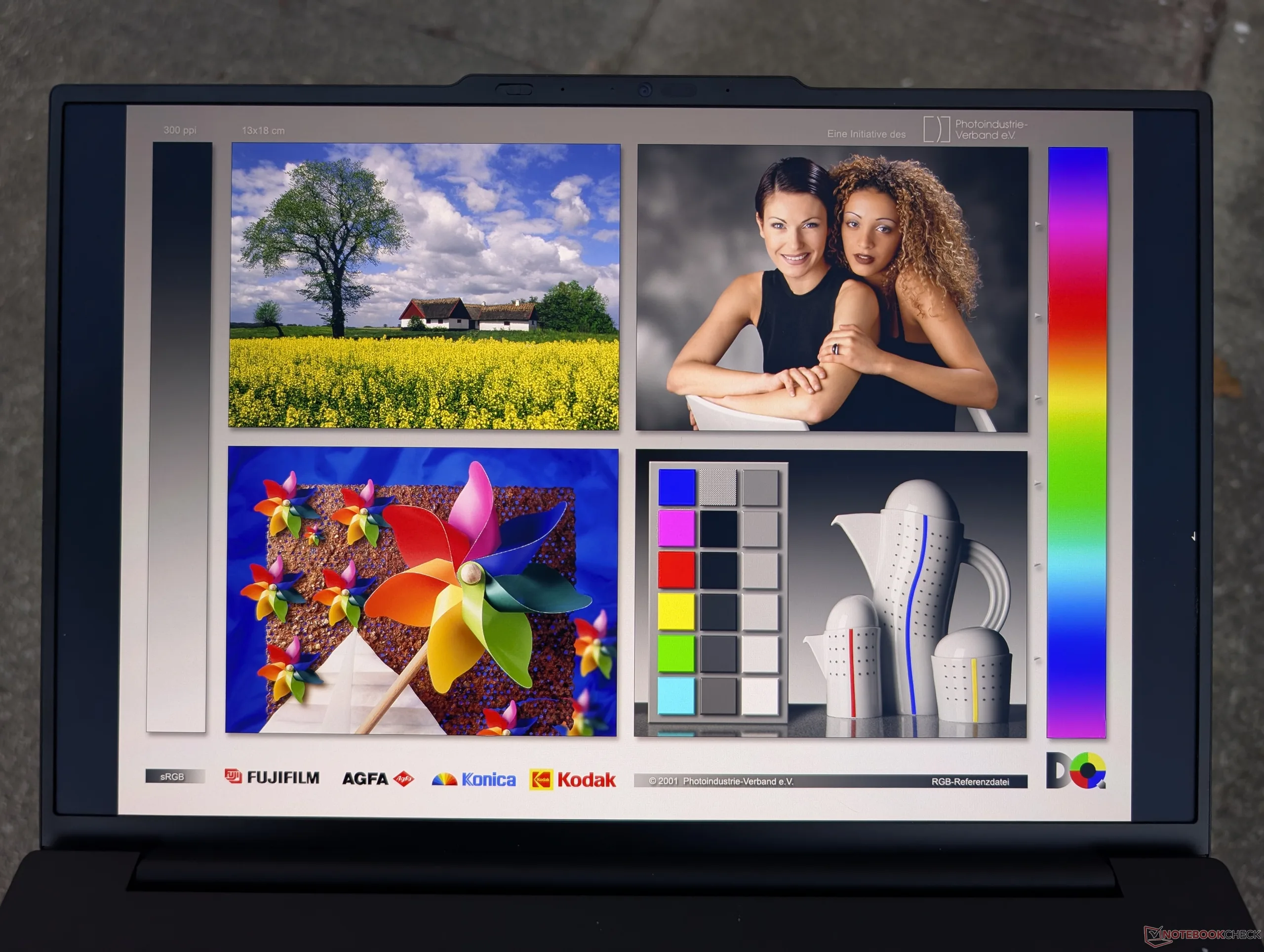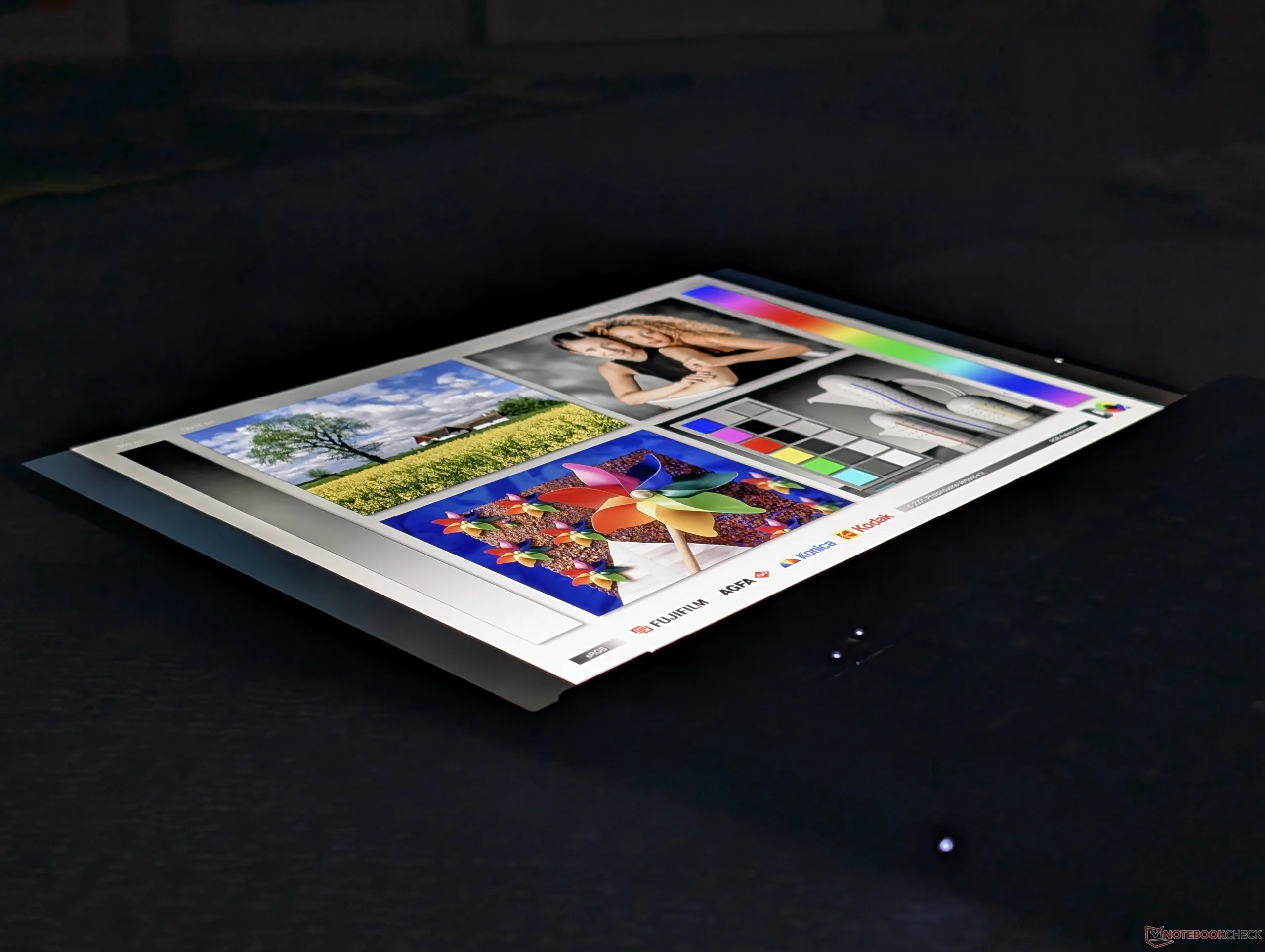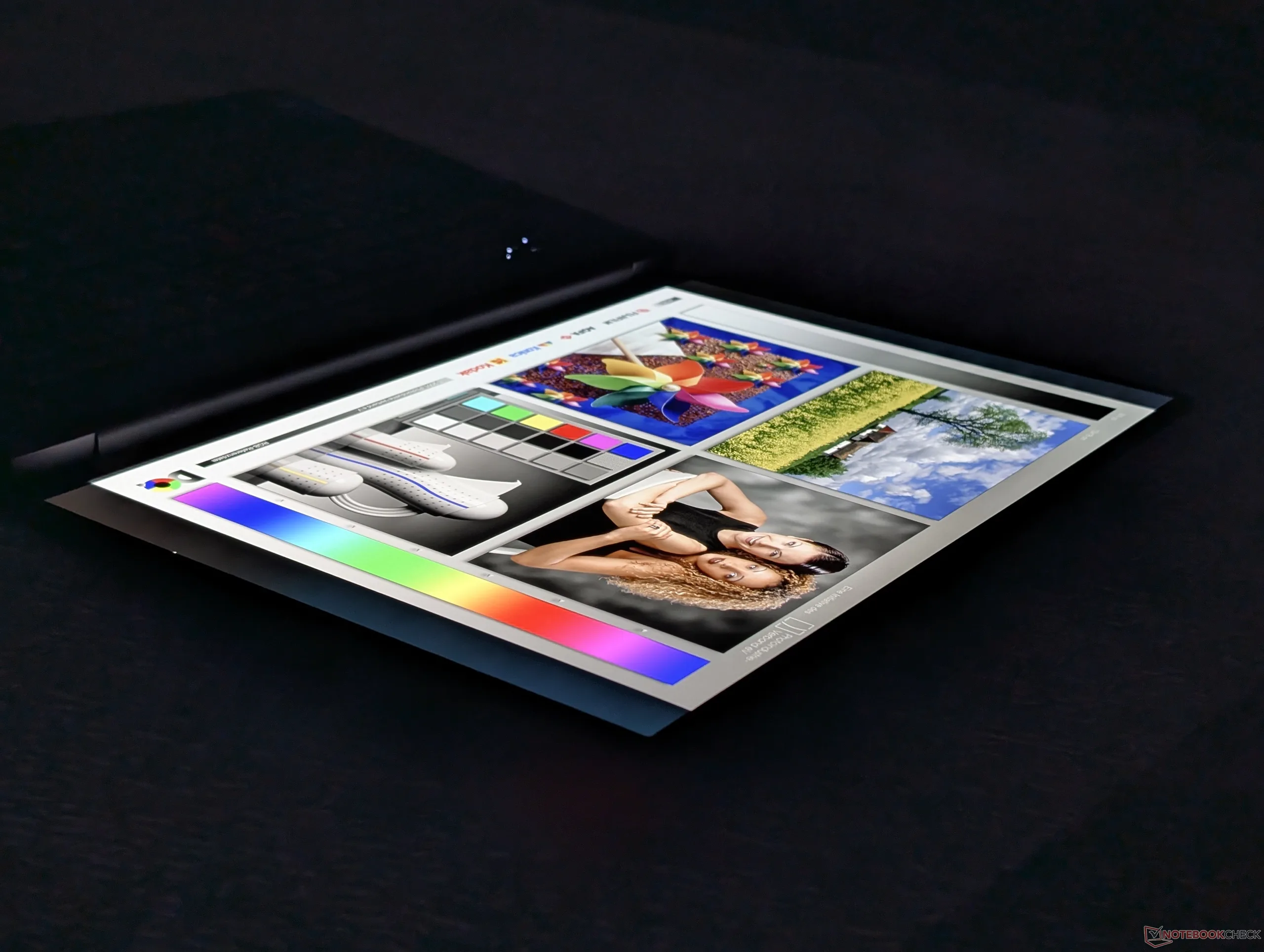 Soggettivamente, lo schermo OLED opaco in tandem sulla nostra unità di prova appare più granuloso rispetto a un'alternativa lucida tradizionale, soprattutto quando si visualizza un'immagine completamente bianca. Tuttavia, eccelle ancora nella riproduzione HDR per i suoi livelli di luminosità molto elevati, soprattutto per un pannello OLED. Le nostre misurazioni indipendenti con un colorimetro X-Rite mostrano una luminosità massima di 566 nits in modalità SDR e 1430 nits in modalità HDR, che si avvicinano ai valori pubblicizzati di 600 nits e 1500 nits, rispettivamente. Se le caratteristiche del touchscreen e dell'HDR non sono importanti, tuttavia, l'opzione 2400p potrebbe essere più conveniente per il suo numero di pixel più denso.