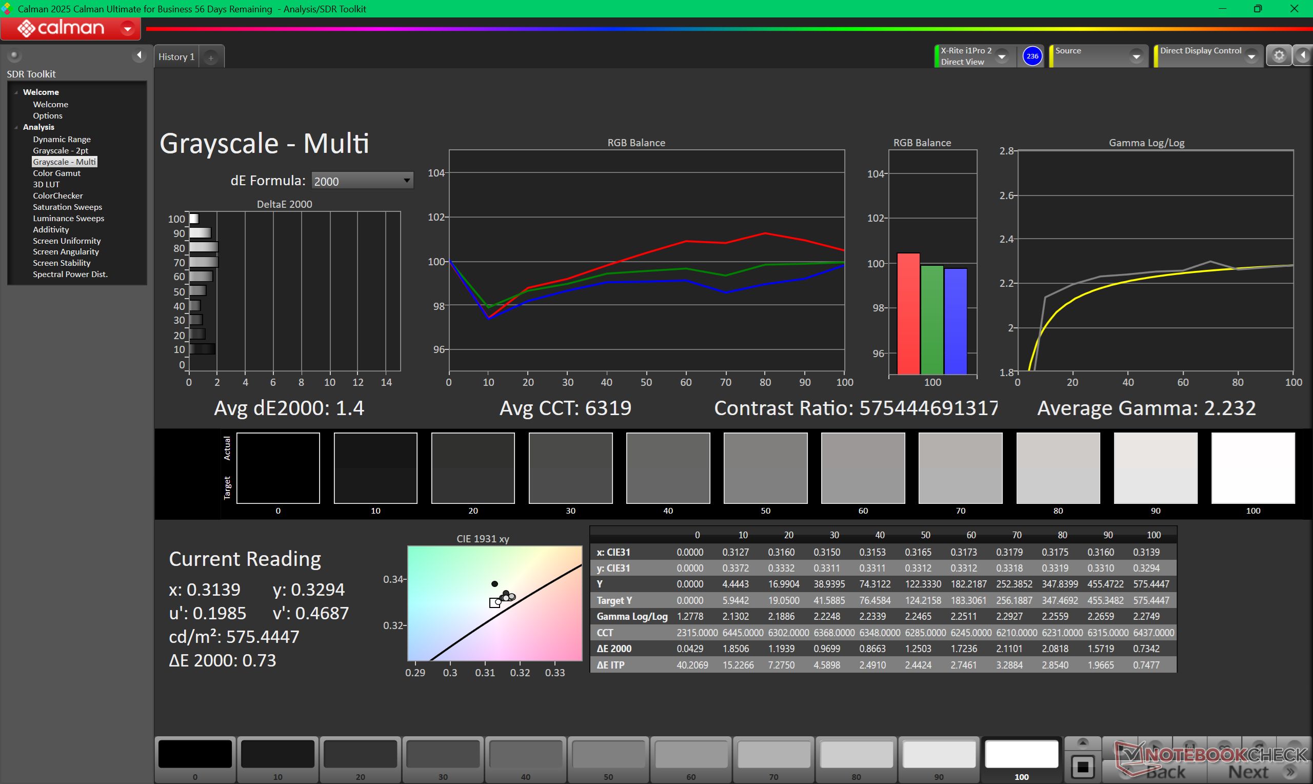 ΔE Greyscale Calman: 1.4 | ∀{0.09-98 Ø5}