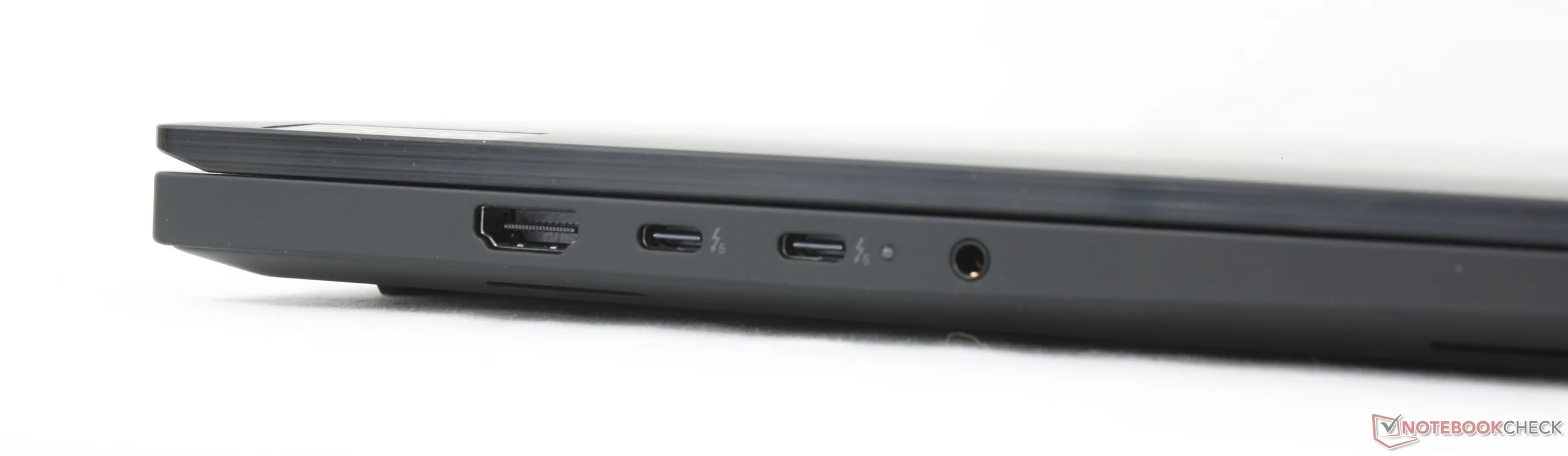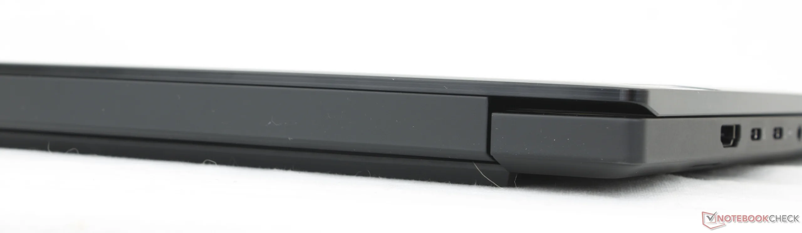 Mentre il telaio e le dimensioni rimangono invariate rispetto al passato, il modello Gen 8 introduce alcune modifiche degne di nota alle porte rispetto alla Gen 7. Il supporto per Thunderbolt 5 è ora presente, mentre la porta proprietaria dell'adattatore CA è stata abbandonata in favore di USB-C per la sola erogazione di energia. Pertanto, una delle tre porte USB-C sarà sempre occupata per l'alimentazione dell'adattatore AC, mentre questo non era vero per il modello dello scorso anno.
