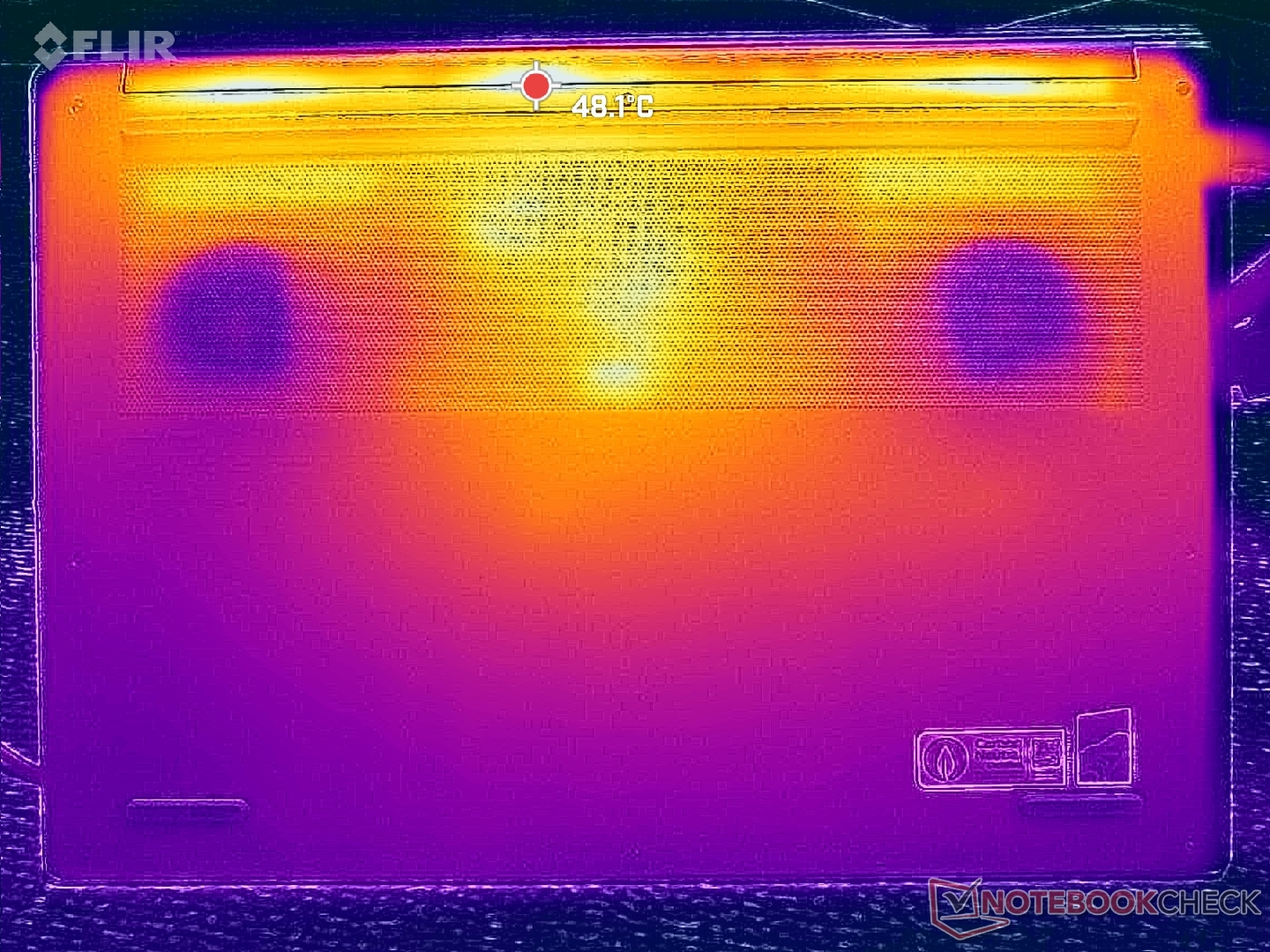(±) Il lato inferiore si riscalda fino ad un massimo di 41.4 °C / 107 F, rispetto alla media di 39.2 °C / 103 F