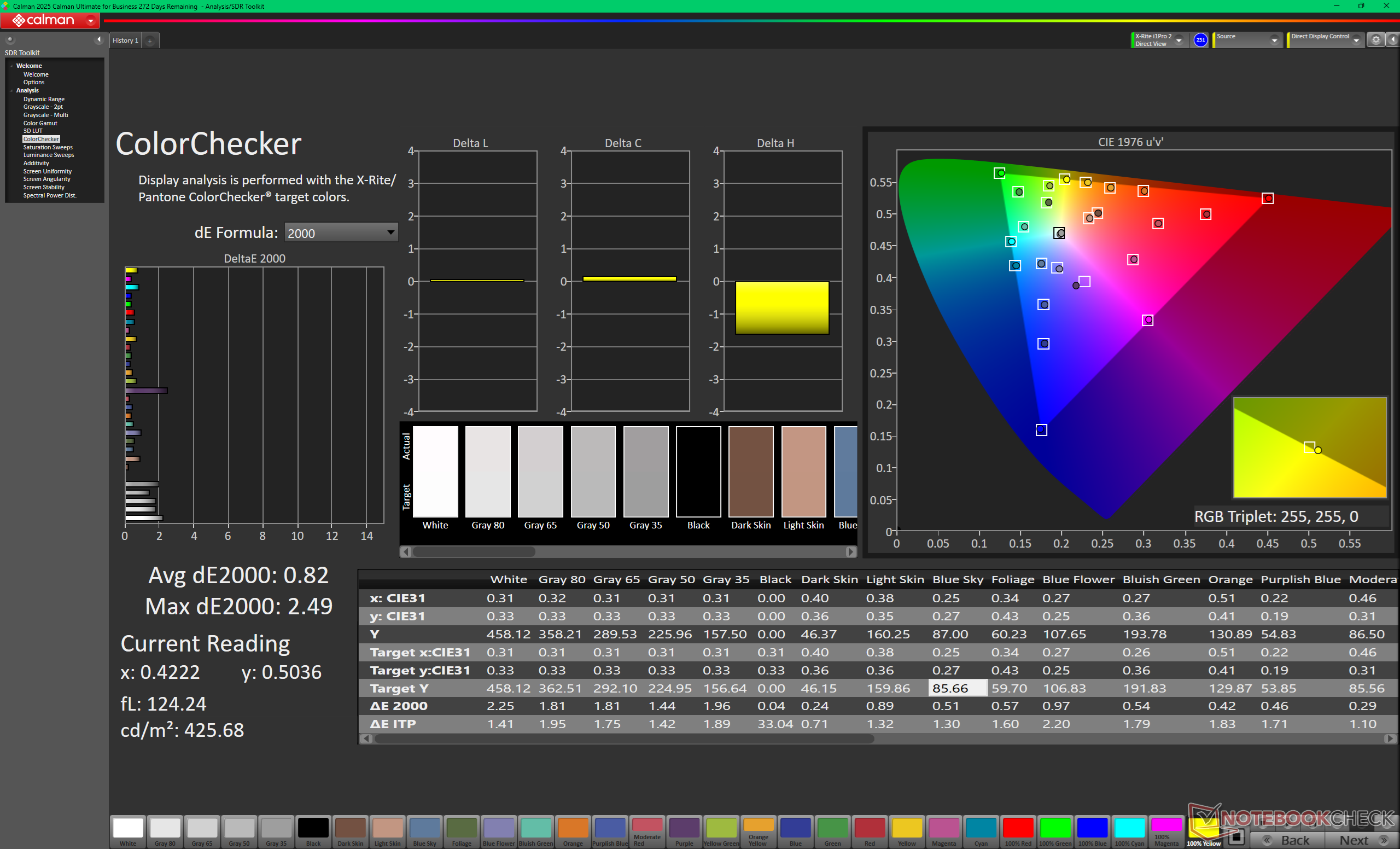 Il display è ben calibrato rispetto allo standard P3, con valori medi di deltaE della scala di grigi e del colore di soli 0,6 e 2,21, rispettivamente.
