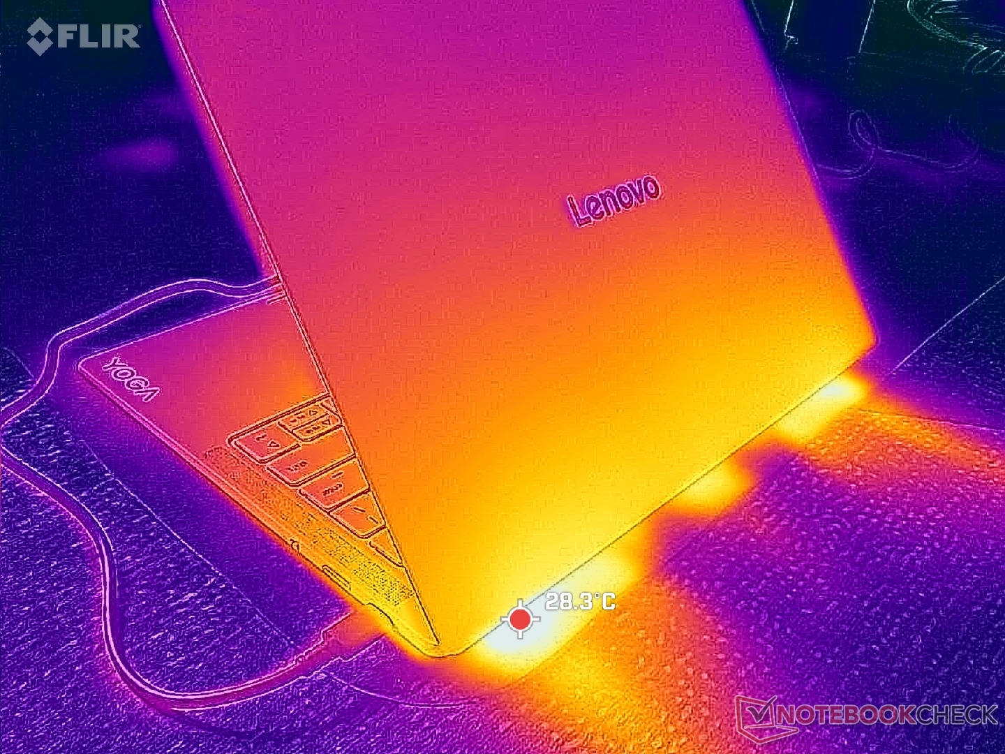(+) In idle, la temperatura media del lato superiore è di 23.4 °C / 74 F, rispetto alla media deld ispositivo di 31.3 °C / 88 F.