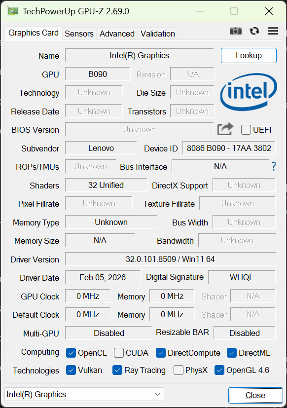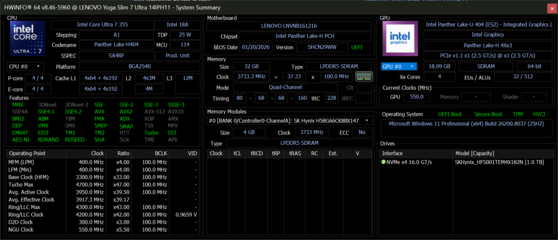 | Lenovo Yoga Slim 7 Ultra 14IPH11 Intel Core Ultra 7 355 ⎘ Intel Graphics 4 Xe3 Panther Lake iGPU ⎘ 32 GB Memoria, 1024 GB SSD | Prezzo di listino: 1700 USD | 978 gr | 13.9 mm | 14.00" 2880x1800 243 PPI OLED | |
