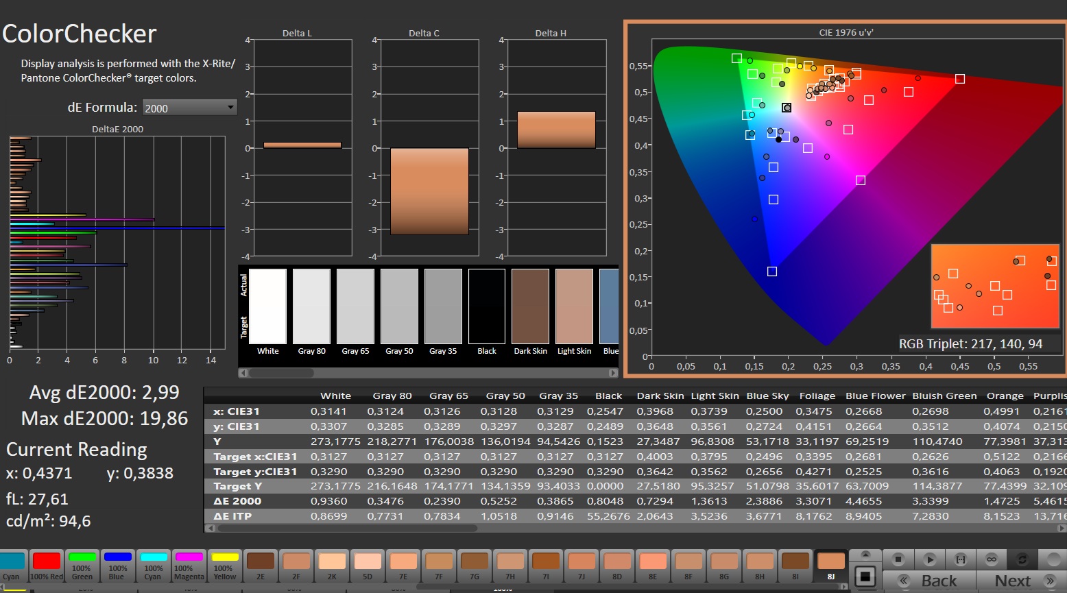 | Greyscale dE 2000 * | 3.9 | 2.16 45% | 2.4 38% | 3.9 -0% | 1.9 51% | 1.2 69% |