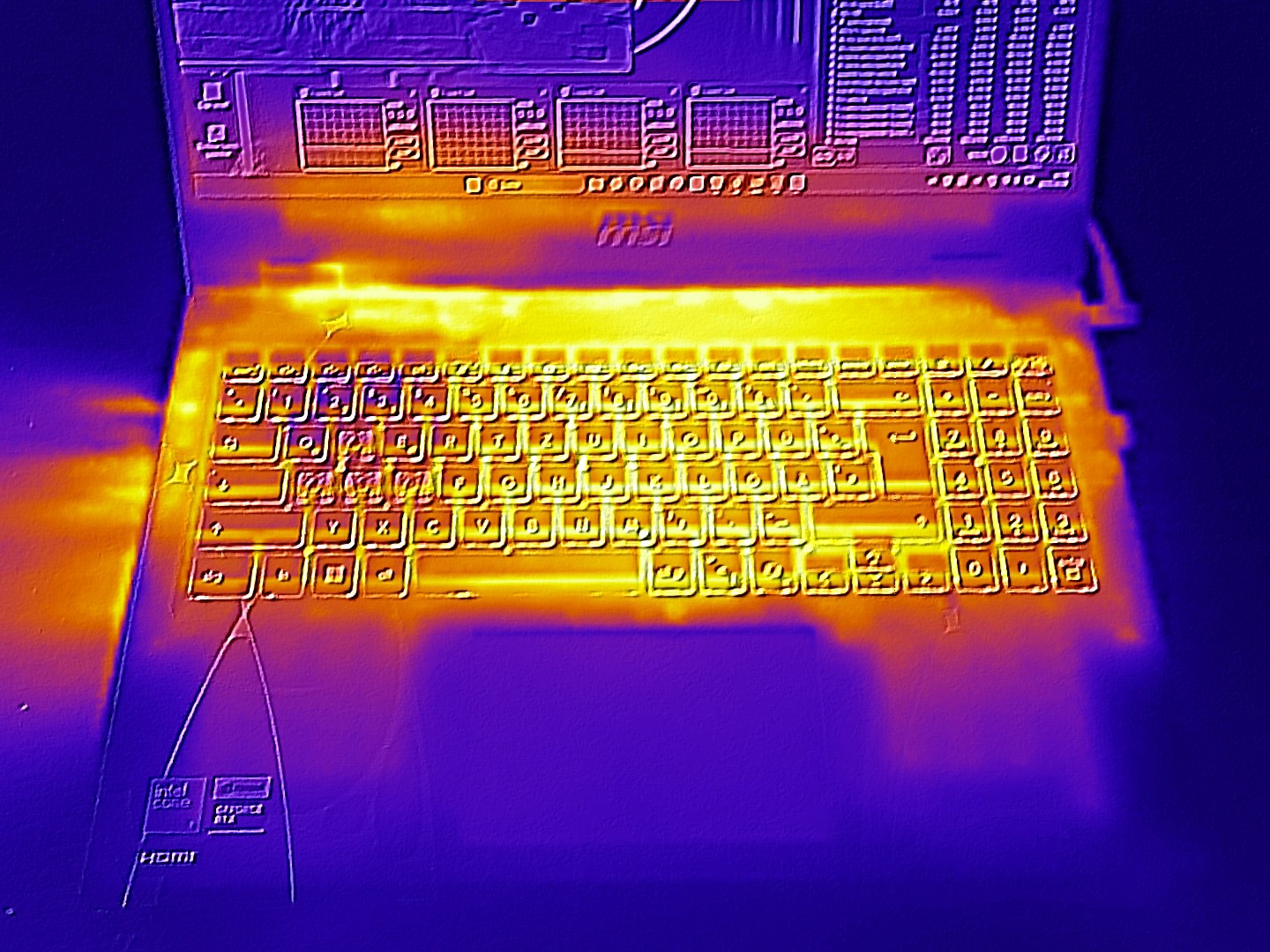 Anche le temperature sono ok. La parte superiore e quella inferiore si riscaldano fino a un massimo di 46 e 45 °C (~114,8 e 113 °F) rispettivamente sotto carico elevato. Alcune debolezze sono evidenti in modalità idle, dove il Cyborg 15 tende a essere più caldo rispetto ai suoi concorrenti.