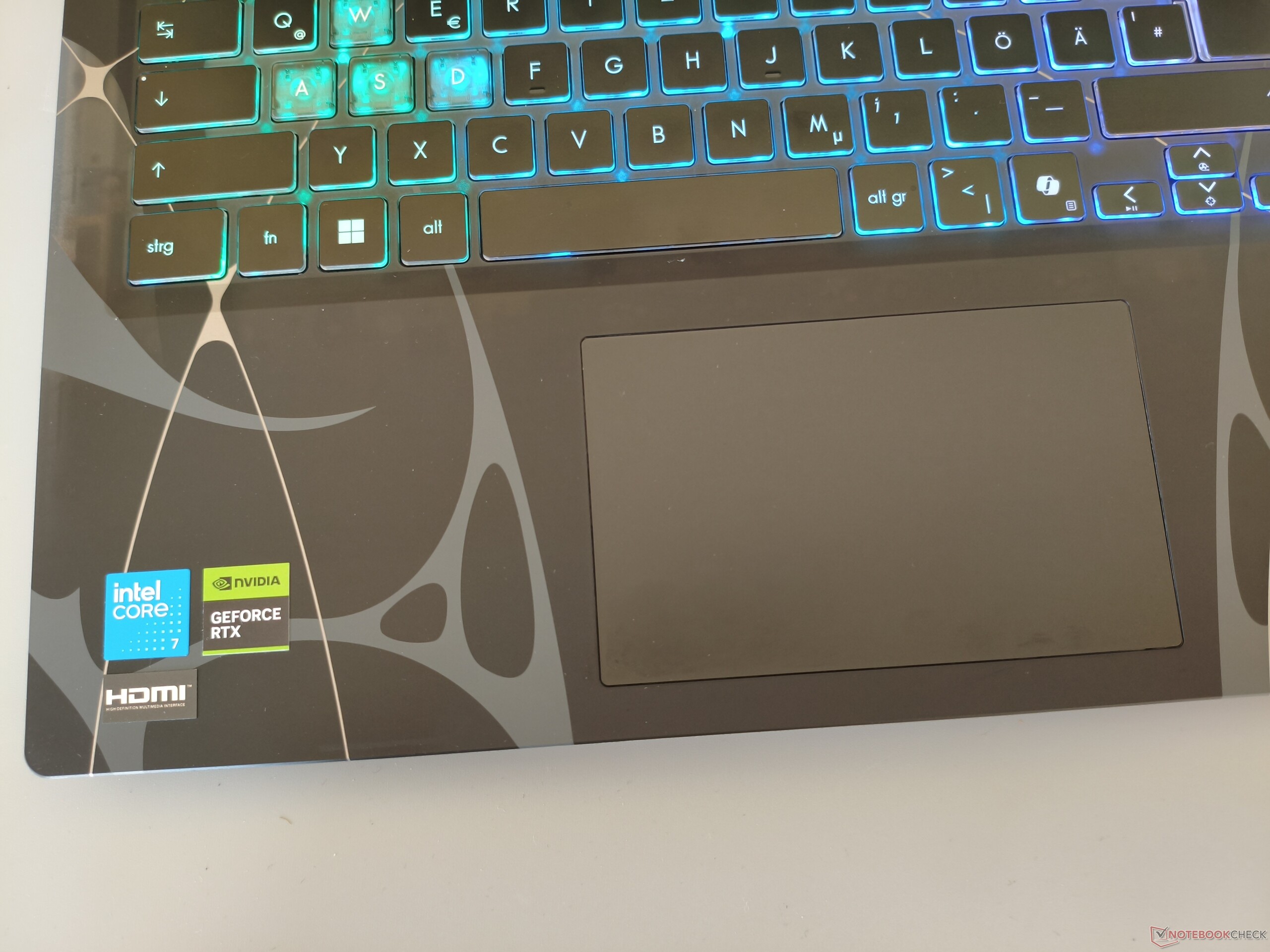 La tastiera richiede una certa familiarità a causa del layout idiosincratico tipico di MSI. Anche il fatto che il tastierino numerico abbia solo tre colonne invece di quattro richiede un po' di abitudine. Descriviamo la sensazione di digitazione in sé come solida. I giocatori possono anche contare su un'illuminazione RGB relativamente potente. Il touchpad misura 12 x 7,6 cm (~4,7 x 3,0 pollici), che è più che sufficiente per un dispositivo da 15 pollici. Il mouse sostitutivo si comporta in modo soddisfacente nel test in termini di precisione, proprietà di scorrimento e gesti.