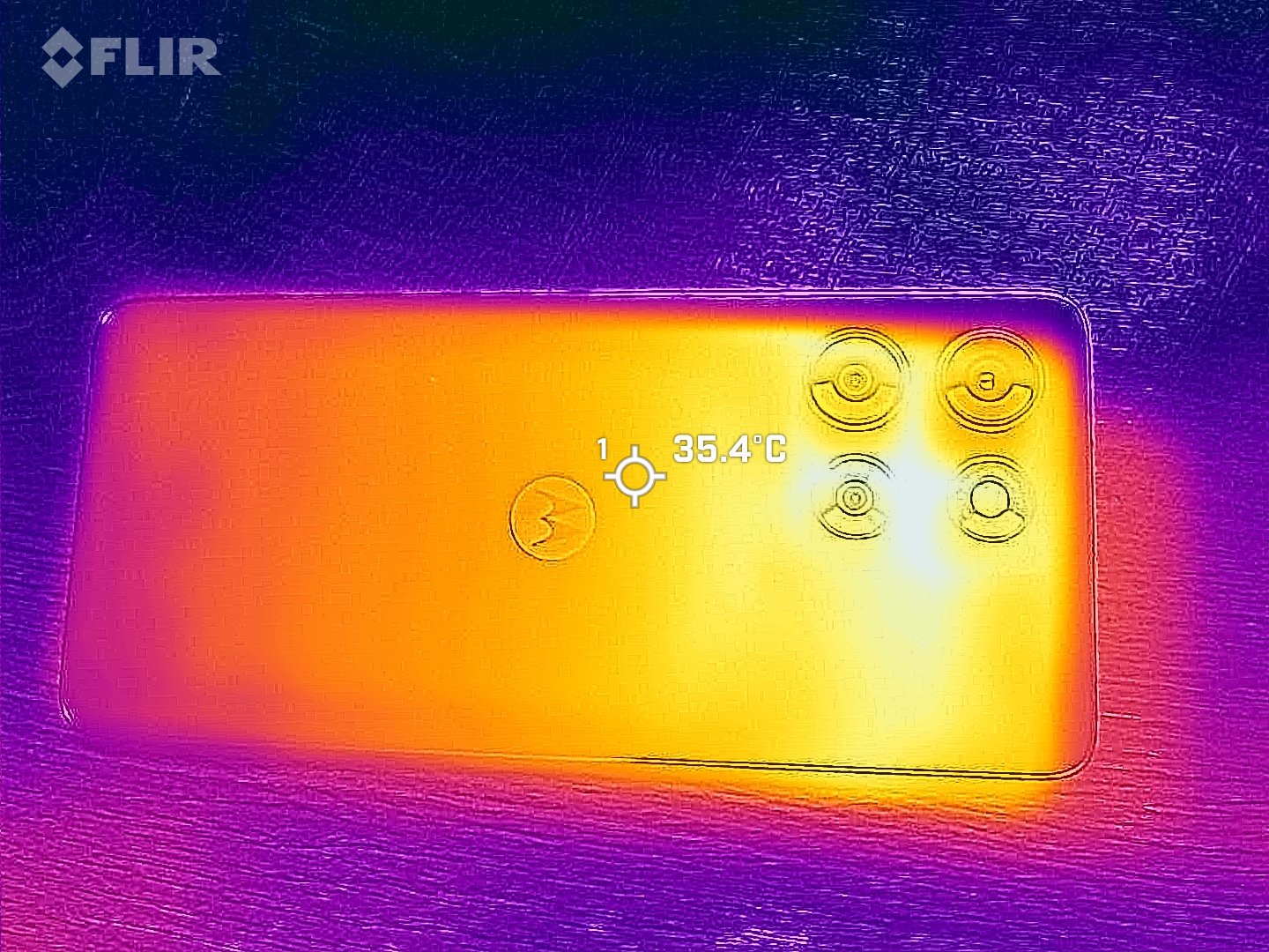 (-) Il lato inferiore si riscalda fino ad un massimo di 46.4 °C / 116 F, rispetto alla media di 33.9 °C / 93 F