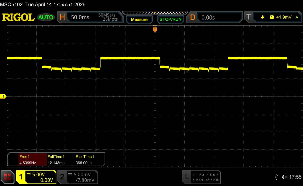 A livelli di luminosità più elevati, il 15T passa a una modalità di regolazione simile a quella DC. Abbiamo misurato una frequenza di base di soli 120 Hz e un'ampiezza del 18% - nessuno dei due è un valore ottimale per le persone sensibili alla PWM, nonostante le modalità di oscuramento ad alta frequenza.