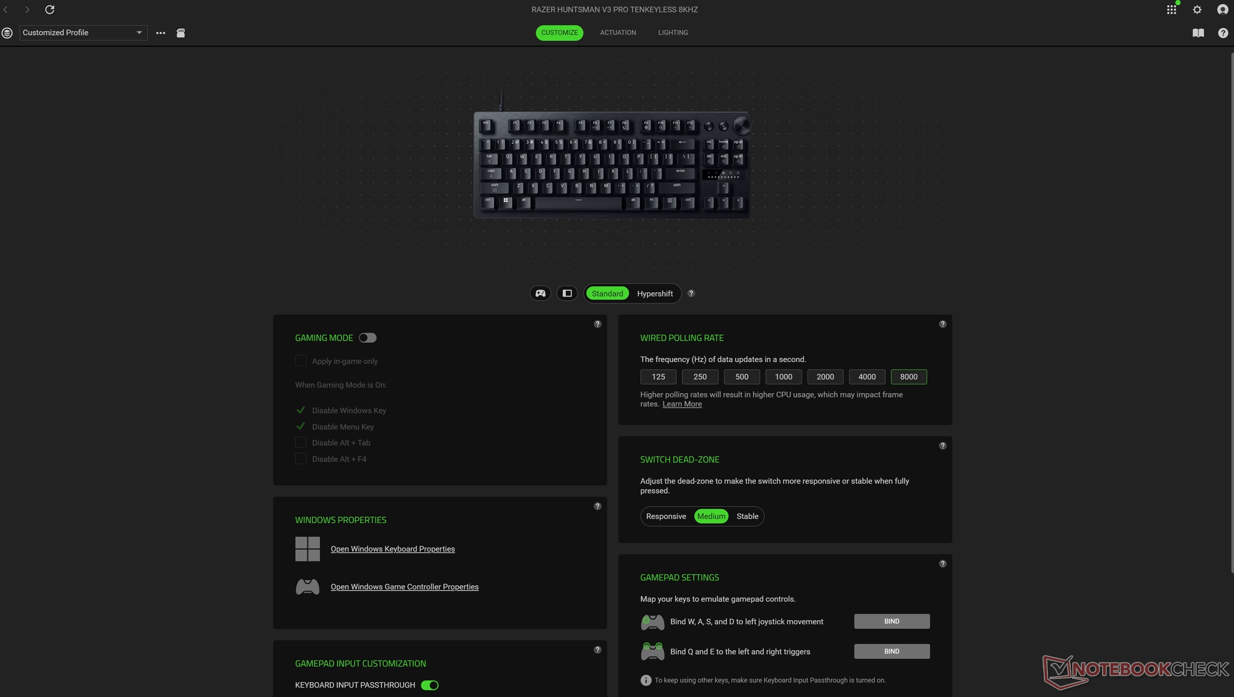Huntsman V3 Pro TKL 8KHz memorizza sei profili a bordo e offre opzioni preimpostate accessibili senza software. Detto questo, i giocatori dovranno comunque installare Synapse 4 per personalizzare completamente la tastiera cablata.