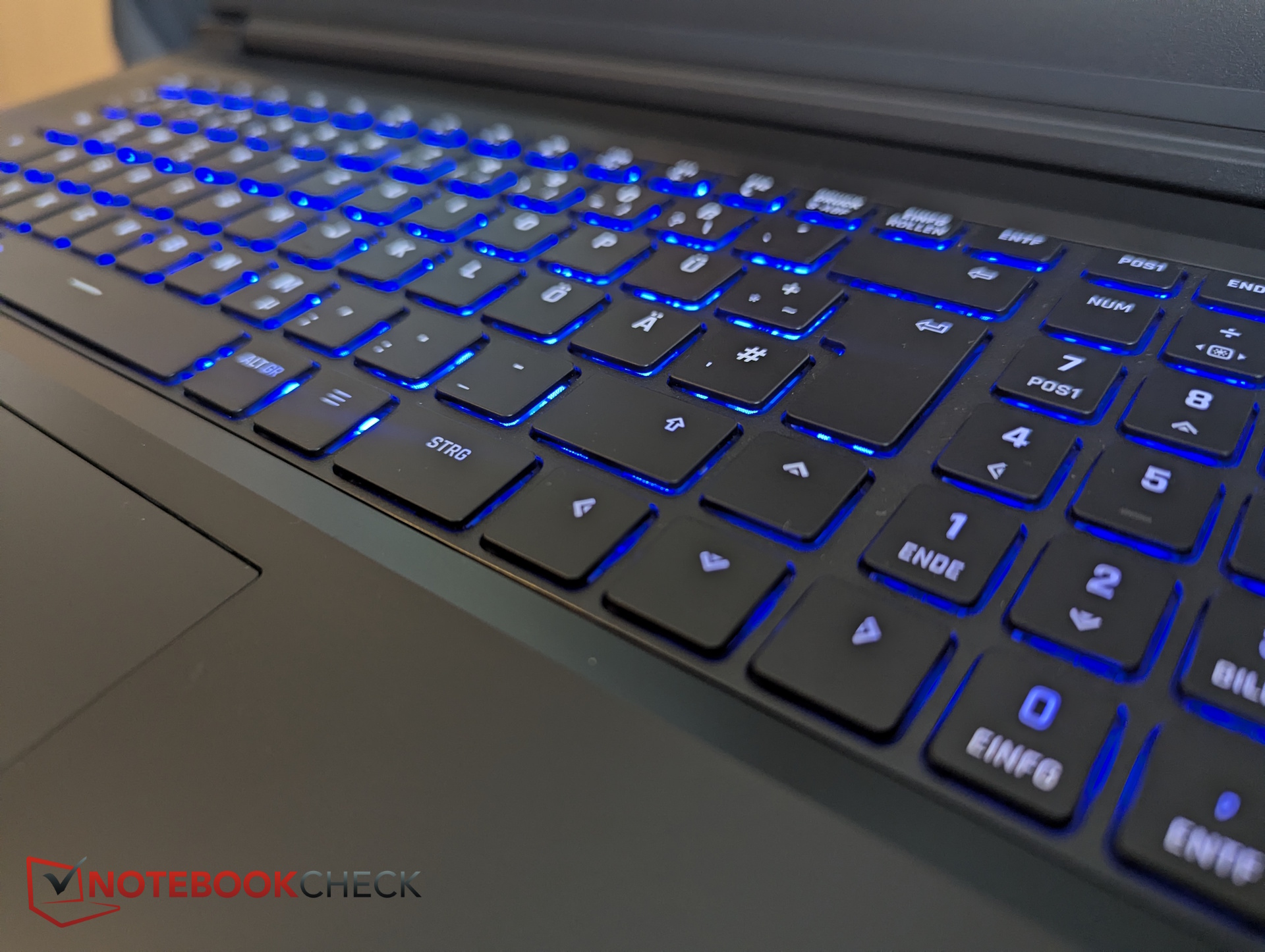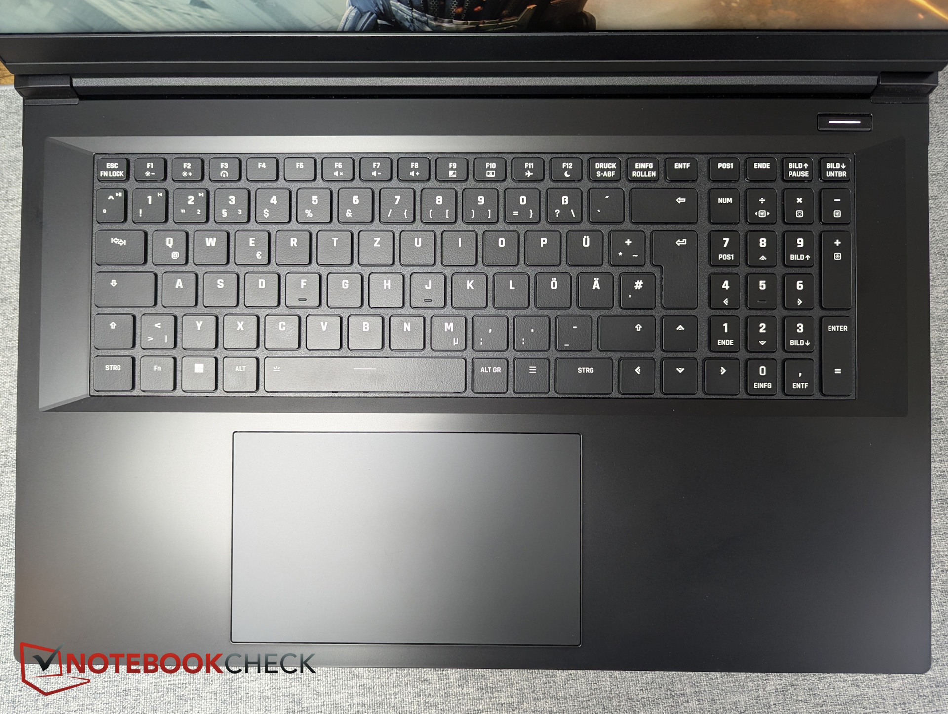 A differenza della maggior parte dei computer portatili XMG, i tasti freccia non sono separati dal gruppo di tasti principale, come nel Focus 17. Per il resto, il layout è pulito e comprende un tastierino numerico dedicato sulla destra.