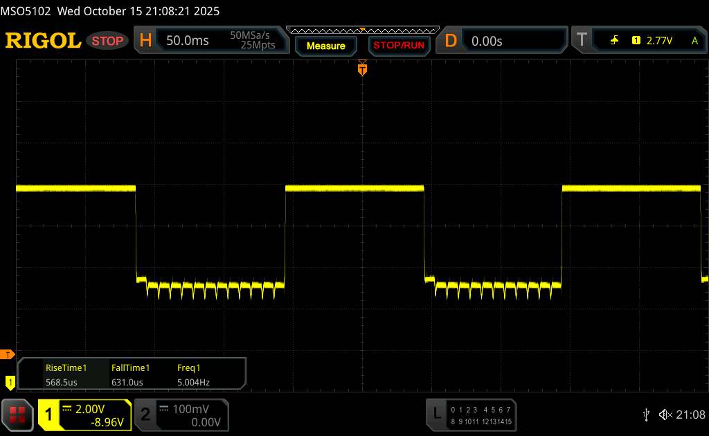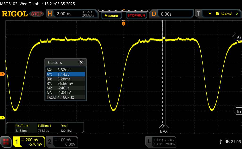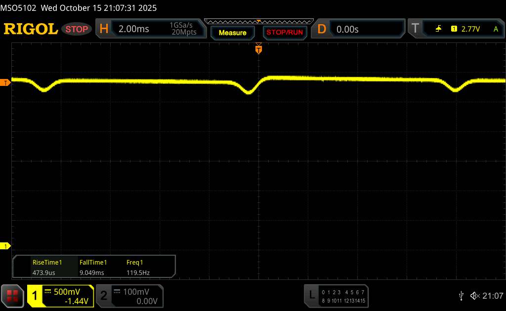 Come di consueto per gli smartphone con schermi OLED, Xiaomi utilizza il PWM per controllare la luminosità. Secondo il produttore, il metodo di regolazione standard dello Xiaomi 15T per le gamme di luminosità elevate è la regolazione CC, mentre la regolazione PWM ad alta frequenza (3.840 Hz) viene utilizzata per la bassa luminosità. Possiamo confermare quest'ultima affermazione sulla base della nostra misurazione.