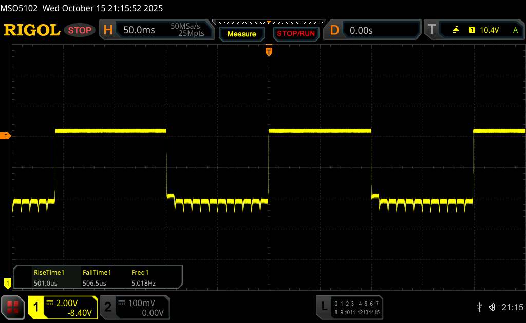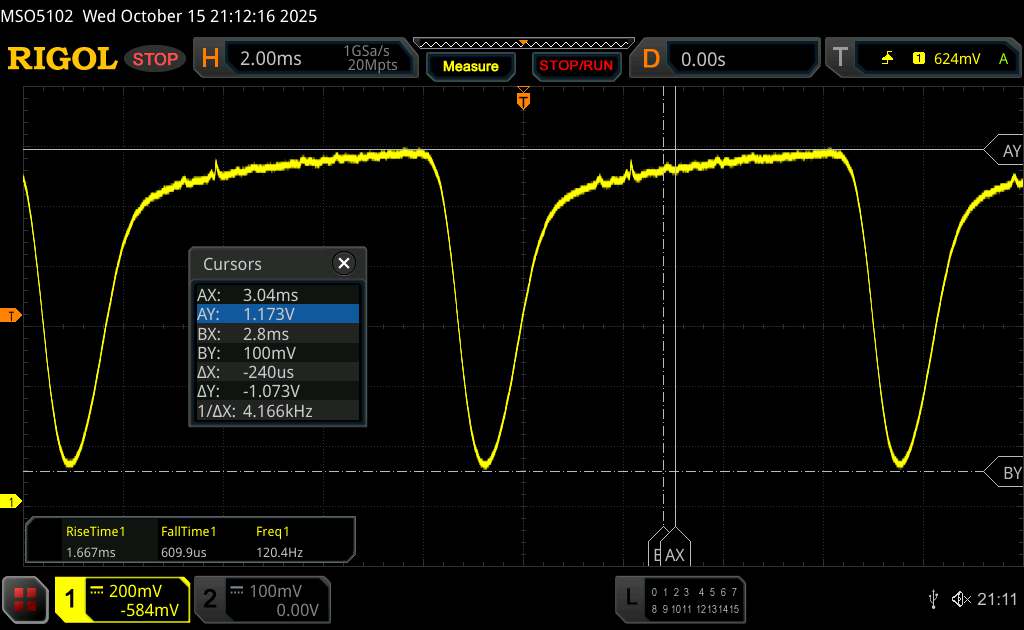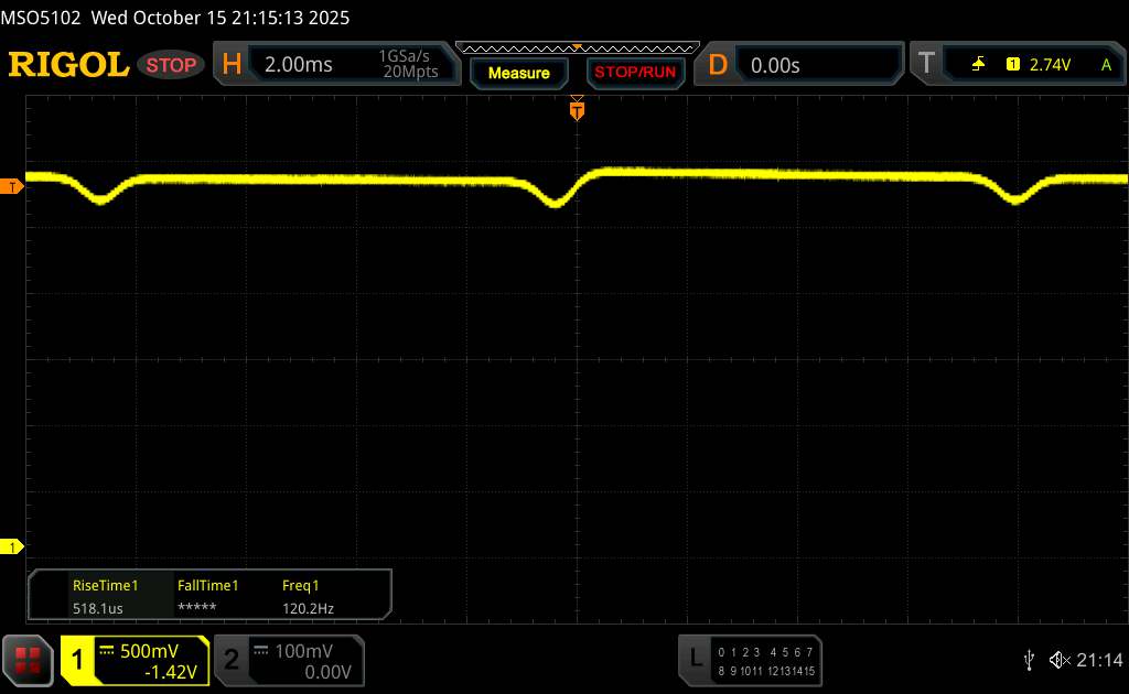 Secondo le specifiche, il 15T Pro utilizza l'oscuramento DC. Sotto l'oscilloscopio, tuttavia, si vede che, come lo Xiaomi 15T, si affida in realtà alla regolazione PWM ad alta frequenza. Il pannello è generalmente facile da vedere, anche se gli utenti sensibili potrebbero avvertire un leggero fastidio.