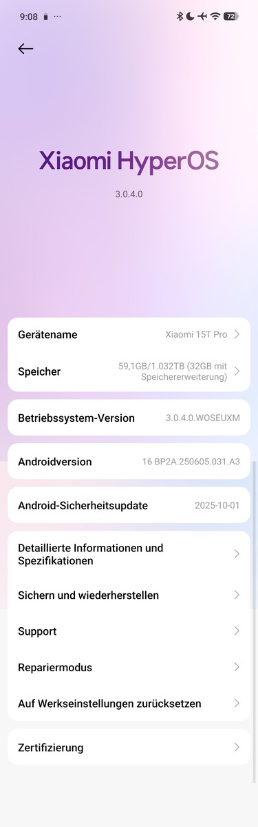 Lo Xiaomi 15T Pro è stato originariamente consegnato con Android 15 e HyperOS 2.0, ma alla fine del nostro test aveva già ricevuto l'aggiornamento a Google Android 16 con HyperOS 3.0.