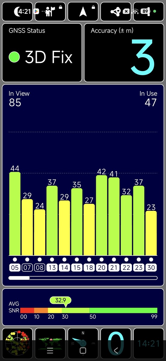 All'aperto, lo Xiaomi 17 Pro ha acquisito rapidamente un segnale satellitare e ha individuato la sua posizione con una precisione di 3 metri. Utilizza le principali reti satellitari globali in modalità dual-band per il posizionamento.