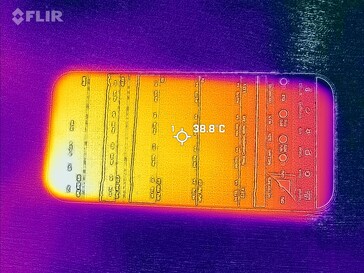 (-) La temperatura massima sul lato superiore è di 48.7 °C / 120 F, rispetto alla media di 35.2 °C / 95 F, che varia da 21.9 a 247 °C per questa classe Smartphone.