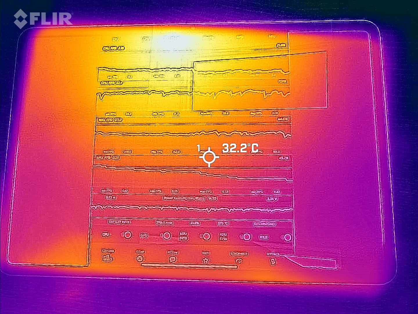 Le temperature di superficie dell'alloggiamento del tablet sono molto eterogenee nel nostro scenario di carico, ma sono anche a un livello non critico nell'area hot spot.